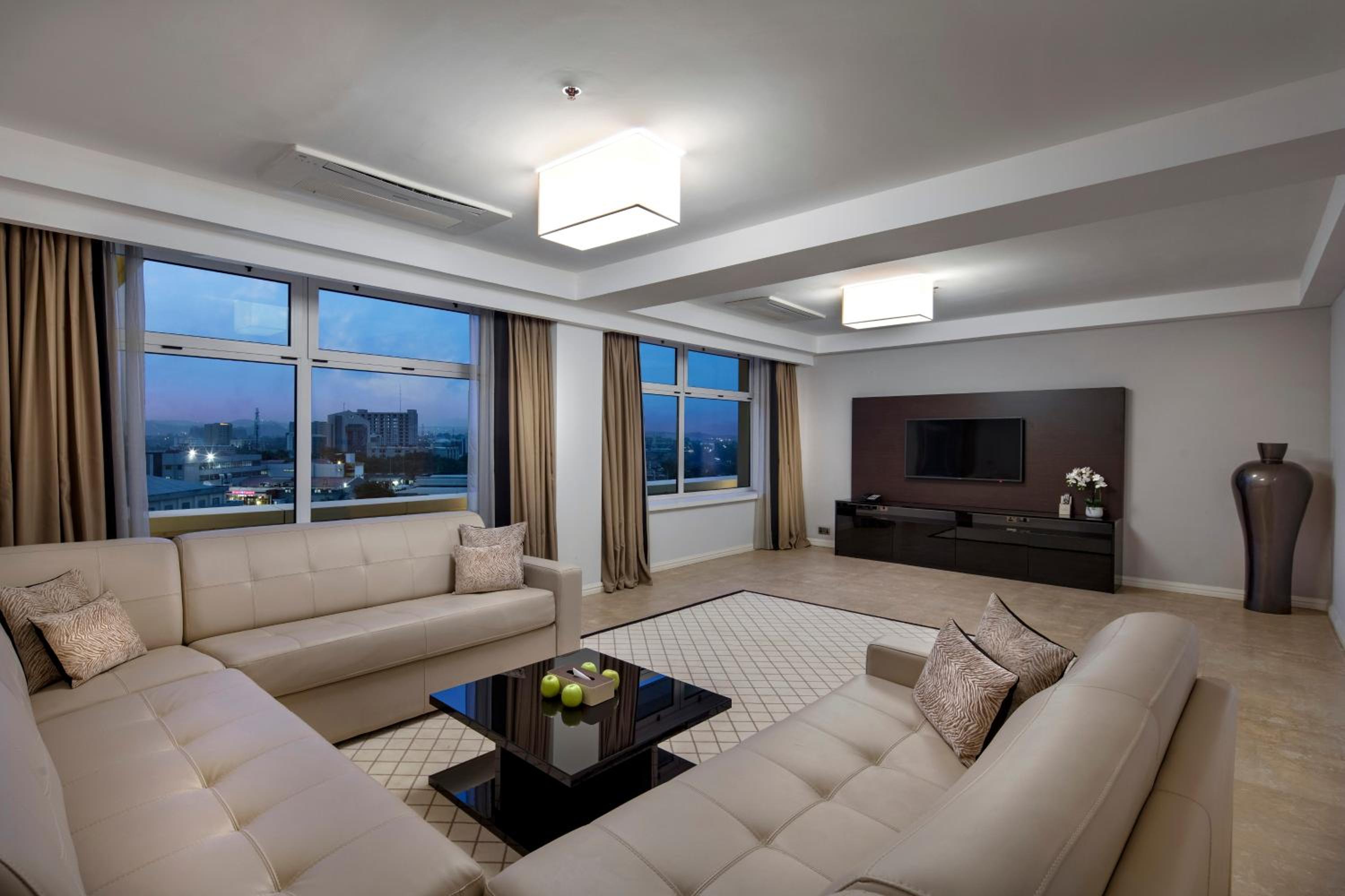 Fraser Suites Abuja offers air-conditioned rooms with internet-enabled flat-screen TVs and private bathrooms, ensuring a comfortable stay for every guest. Some rooms even provide stunning views of the pool or city, adding an extra touch of luxury.