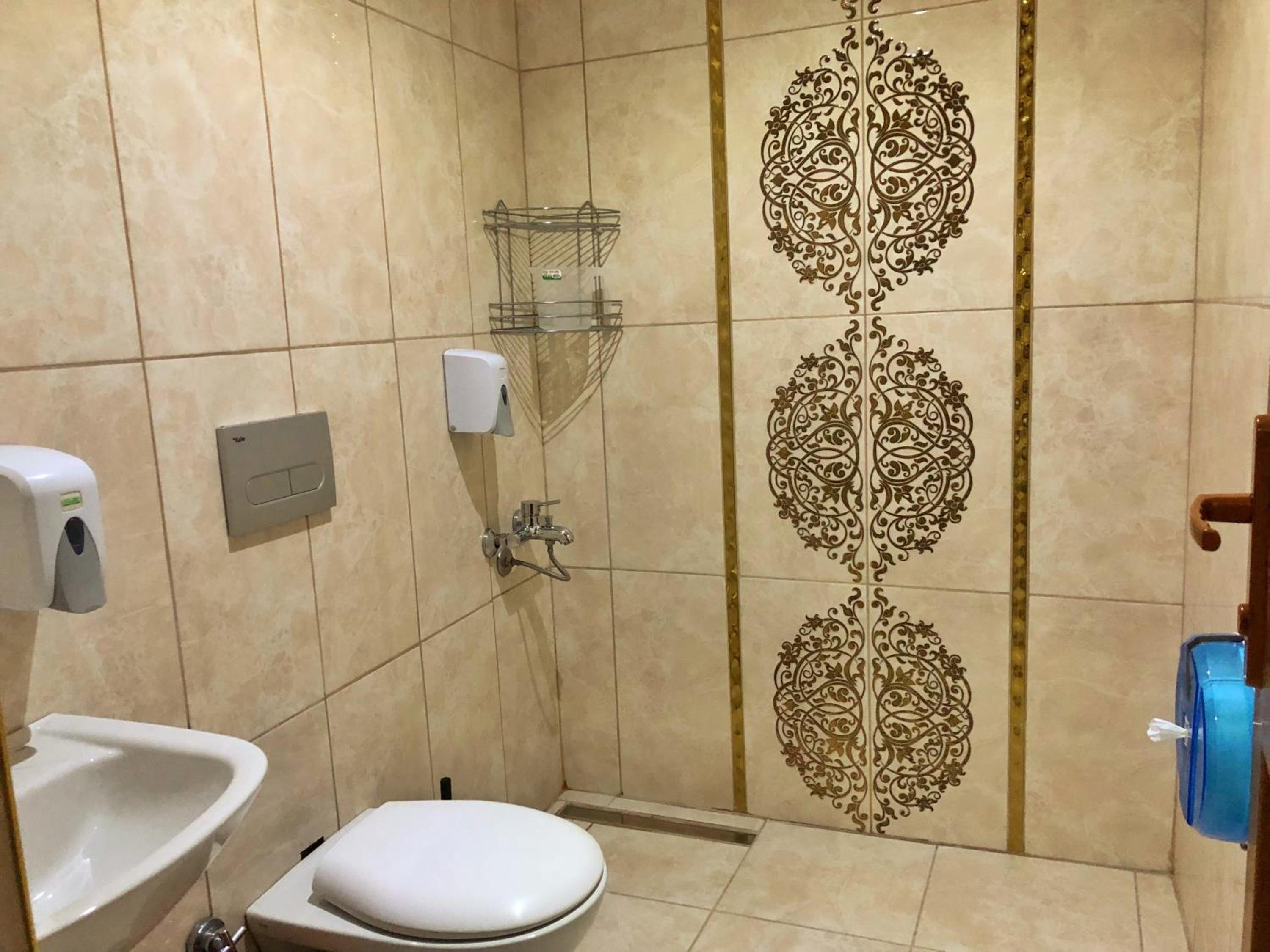 The room was small, with a compact toilet and a very small sink for hand washing.