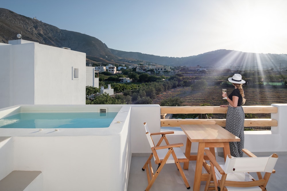 We picked a room with sea view & hot tub which was lovely. Unfortunately, the balcony was shaded later on in the day & the hot tub didn't warm up enough for us to use it, so we were kindly offered another room for our last 2 nights, which made a big difference as we had the sun all day. The staff were just amazing - always there for whatever we needed. The hotel was in a very quiet area with not much around & as a small property the pool area was never busy. Even though the airport was not far away & we could watch the planes, it didn't disturb us. Breakfast needed to be selected each day ready for the next day which was then delivered to the room around the chosen time. Walk into Kamari & the beach front took about 15/20 minutes. Bus stop to reach Fira about 5/10 minutes walk. Taxis can be ordered & were set prices. We also arranged for a massage in our room. We absolutely loved the hotel as it offered exactly what we wanted - sea view, hot tub, relaxation, quiet property & location. I have rated it 4 stars as I feel it could just do with a few improvements to be rated 5 stars.
