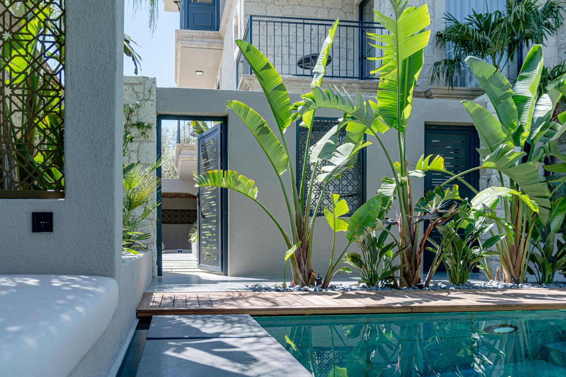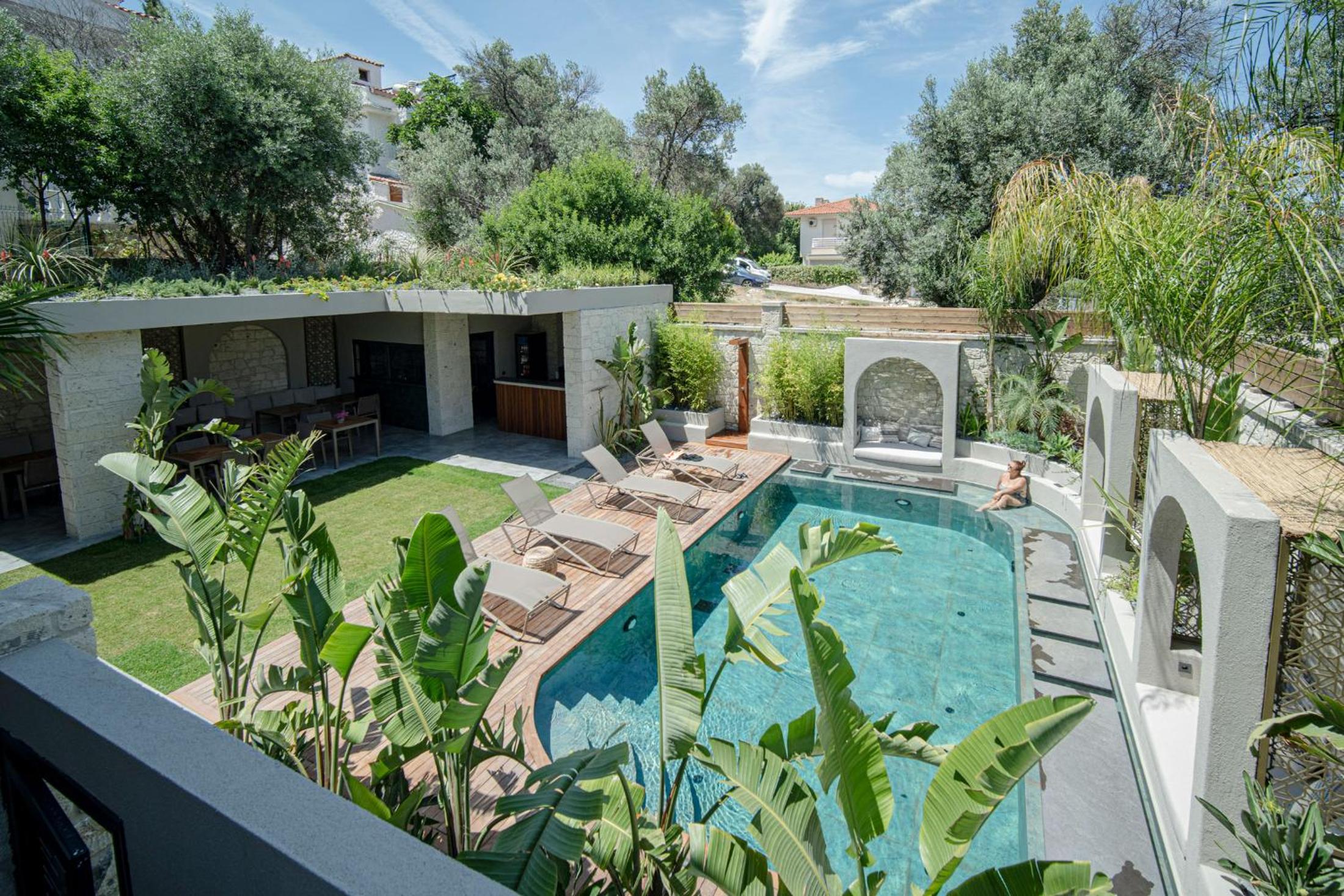Garden and Outdoor Pool: Enjoy the serene garden and outdoor pool with complimentary parasols and sun loungers, perfect for relaxation under the sun.