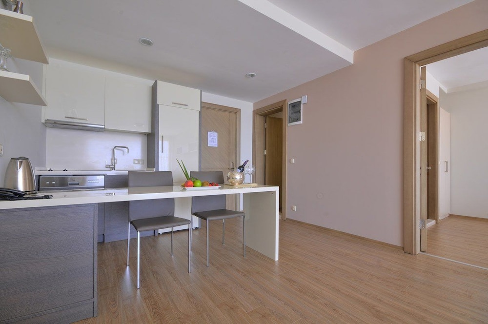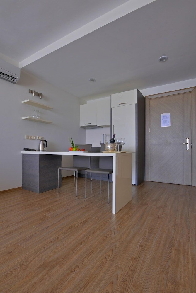 Recreation Amenities and Terrace Views: Dive into relaxation with our sauna or savor the panoramic beauty from the terrace.Convenience and Service: Enjoy complimentary Wi-Fi, concierge services, and a shared television. Benefit from a 24-hour front desk, luggage storage, and laundry facilities.Comfortable Suites: Feel at home in our air-conditioned rooms with kitchenettes, full-sized refrigerators, and stovetops. Stay entertained with flat-screen TVs and satellite channels, and stay connected with free Wi-Fi. Housekeeping ensures a cozy stay all week.Book now for an unforgettable experience at Delmar Suites & Residence in Çeşme, just minutes away from the finest attractions and beaches.