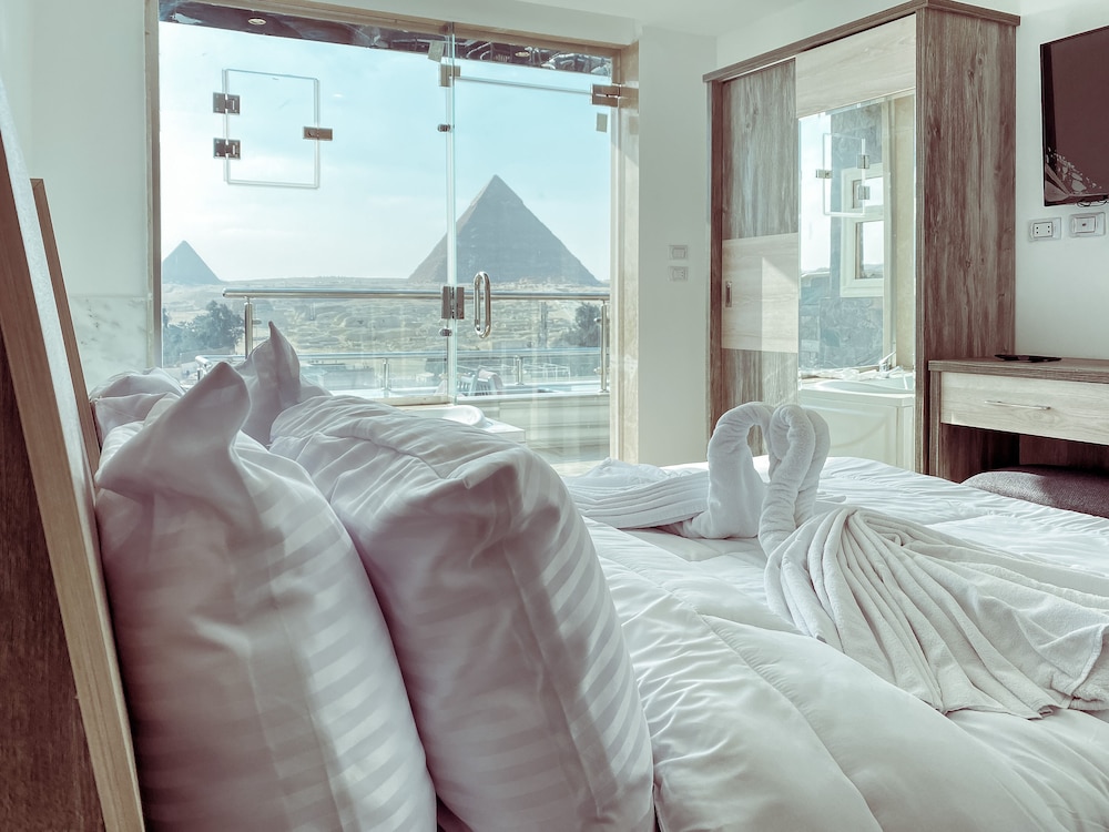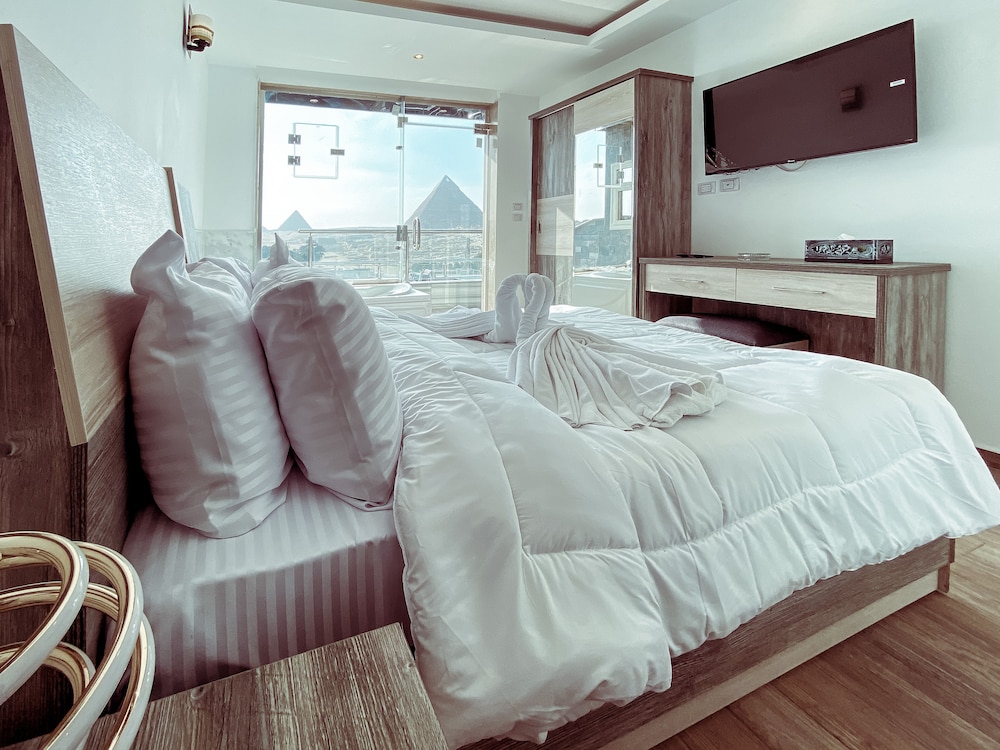Mr.Fawzi, General Mngr was a true professional & very hospitable. Always communicated promptly. Views from the rooftop terrace was insanely beautiful & we felt staying among the Pyramids very nostalgic. Good breakfast. Ms.Rania, Guest relations offered the best tour to Alexandria. Had some sewerage smell issues which was finally resolved by Adam, the owner. Overall highly recommend all to stay here & be treated like family! Everything is within walking distance. Beds are comfy & clean.