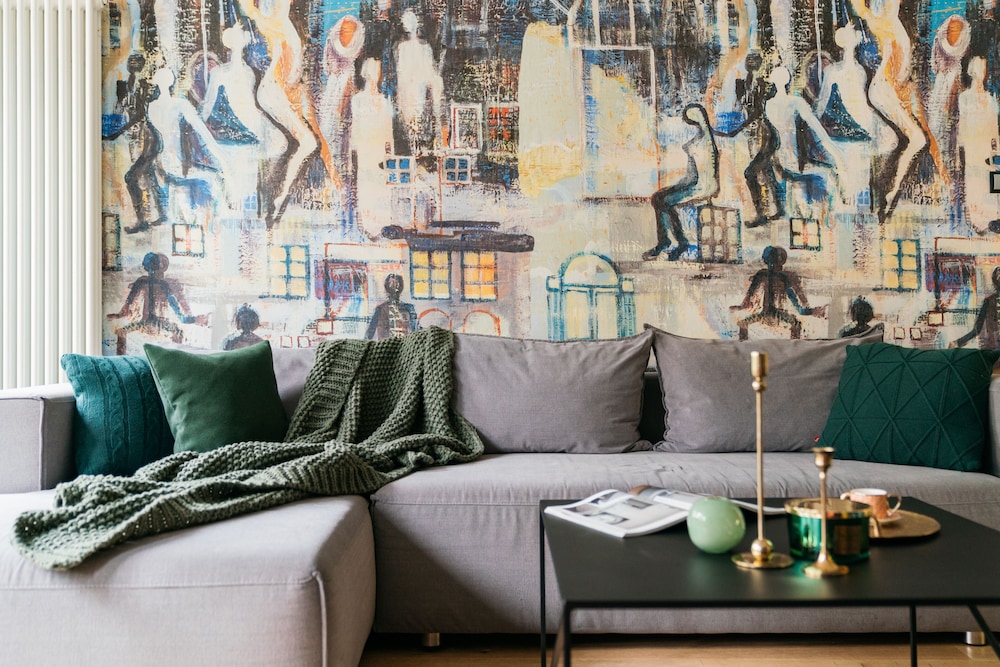 Make yourself at home in this uniquely decorated apartment that offers a cozy kitchenette and a separate sitting area for your comfort.