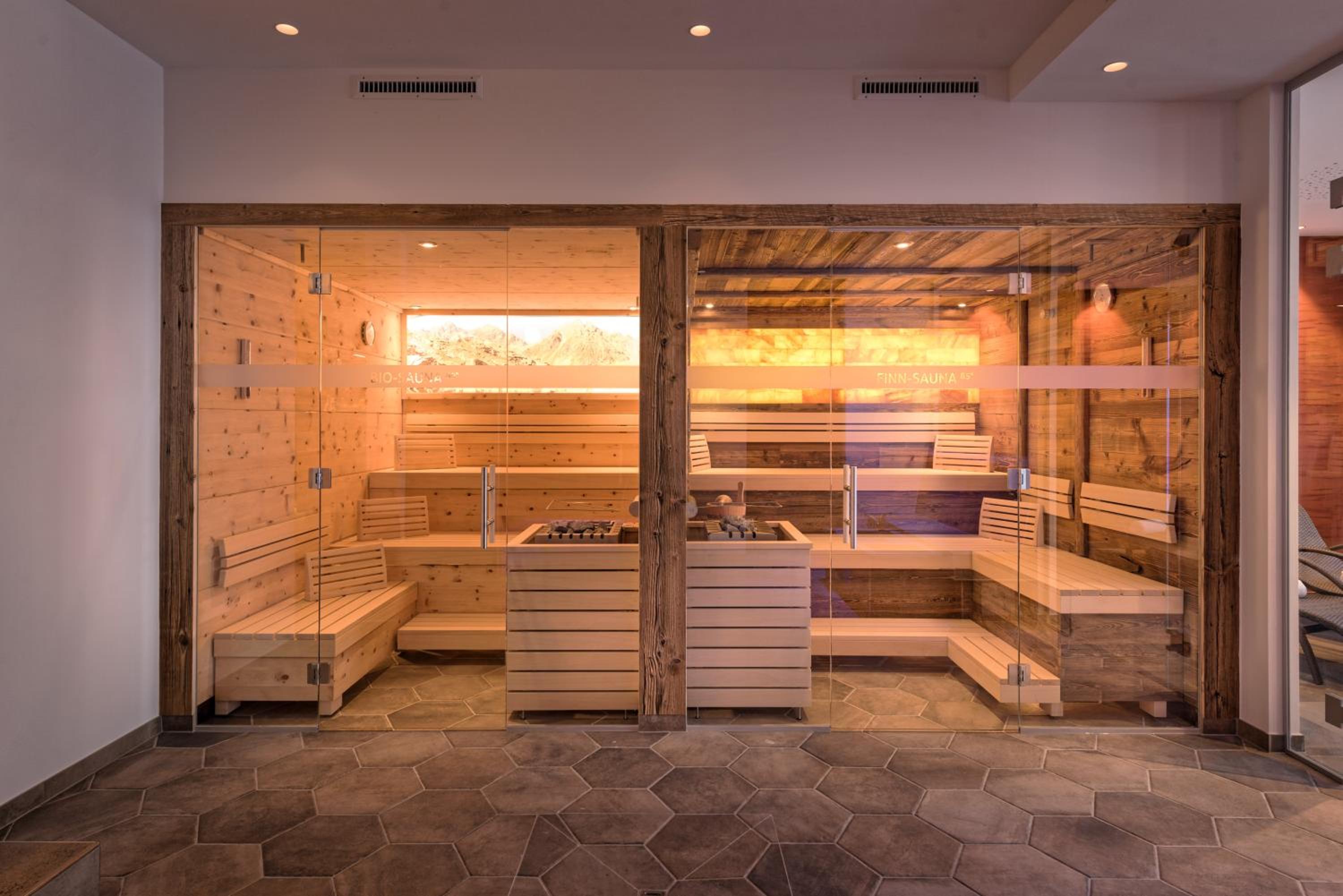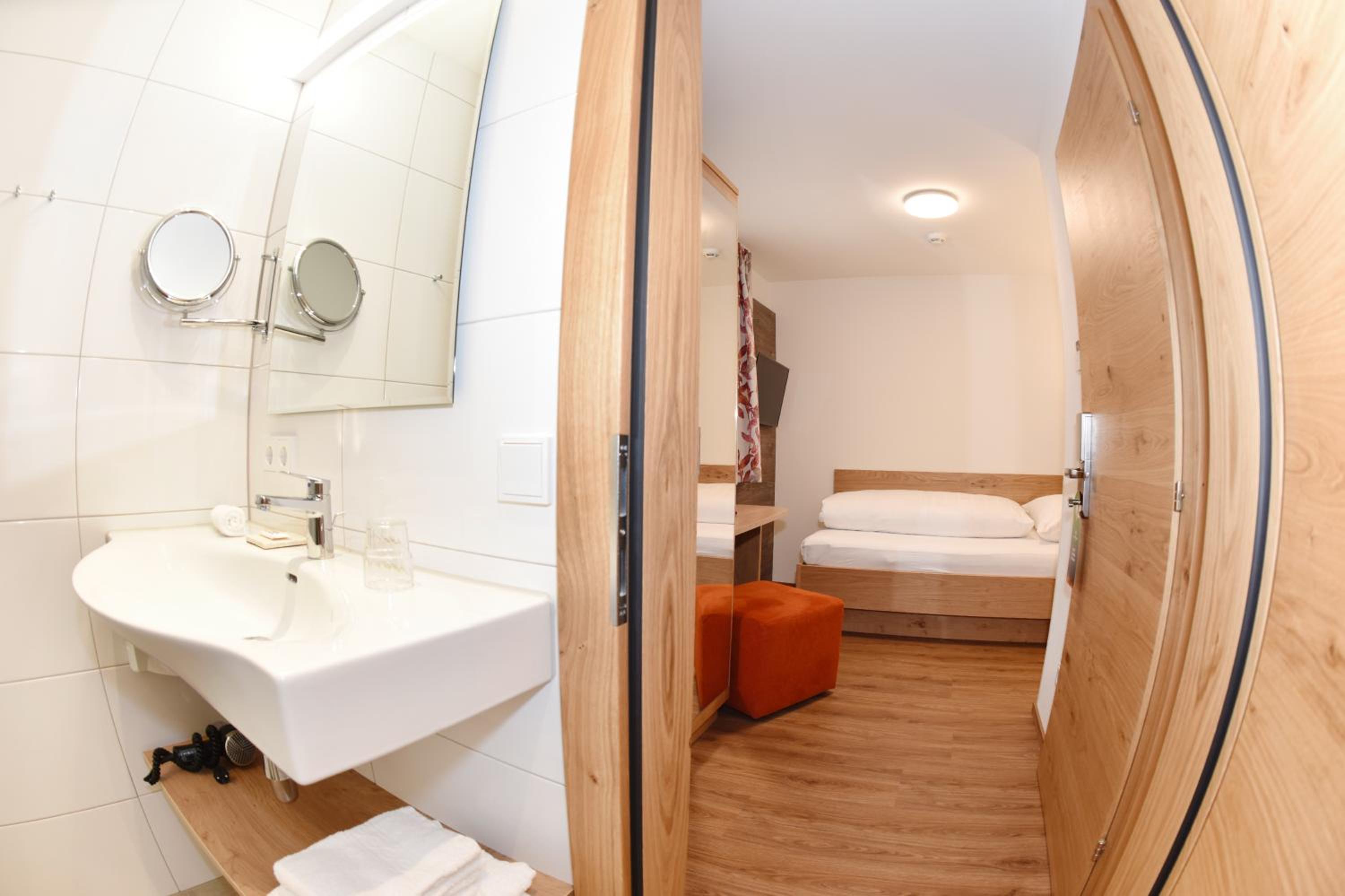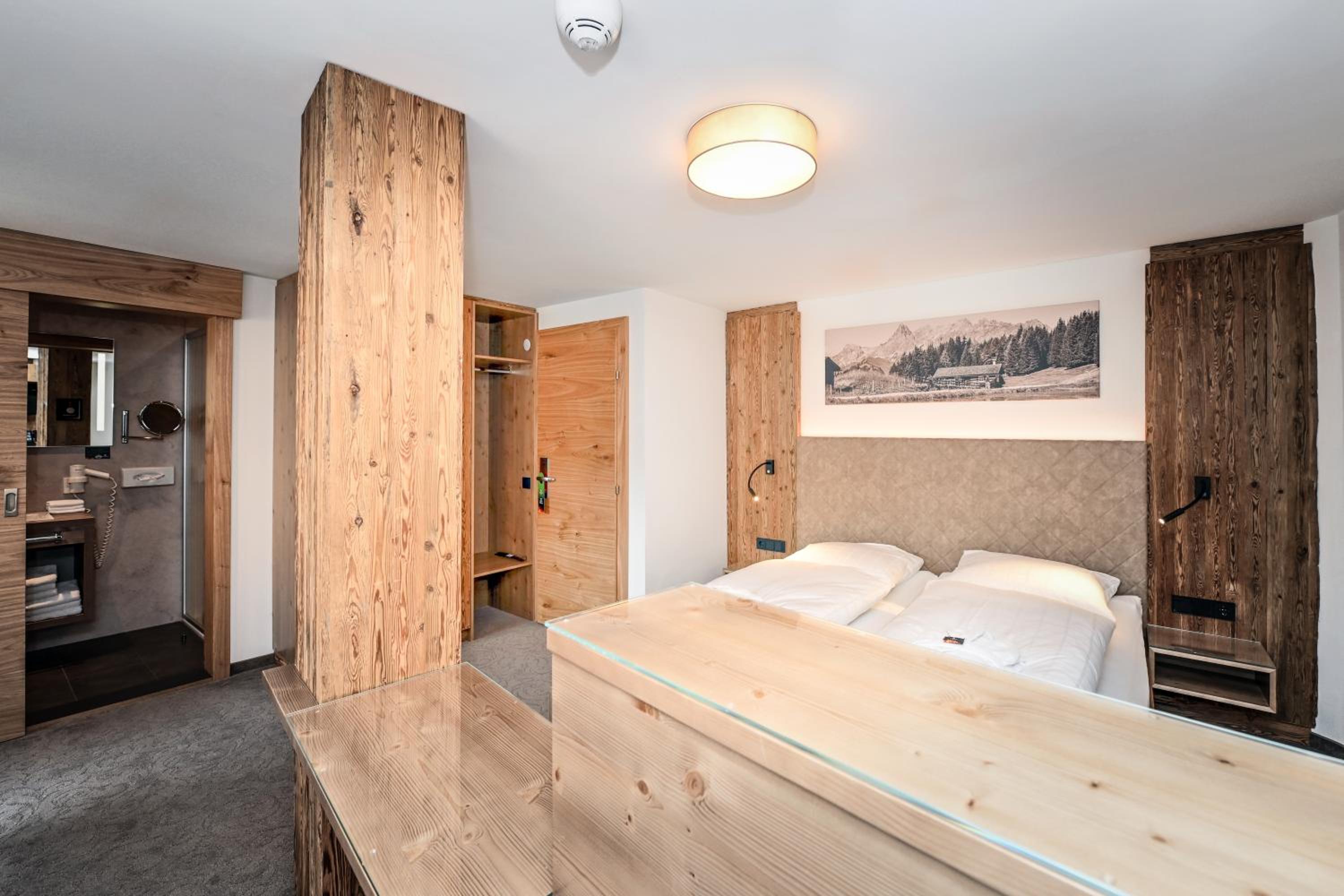 Begrüßungssekt, großes Zimmer mit Balkon, große Auswahl beim Frühstücksbuffet, leckeres Abendmenü, schöner Wellnessbereich, Skikeller ebenerdig und beheizt.