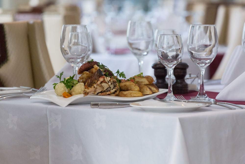 Indulge in the diverse dining options the hotel offers - from the two restaurants serving delectable cuisine to the convenience of room service for a cozy night in.