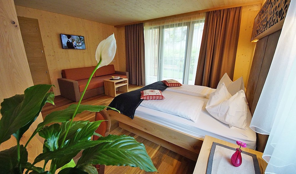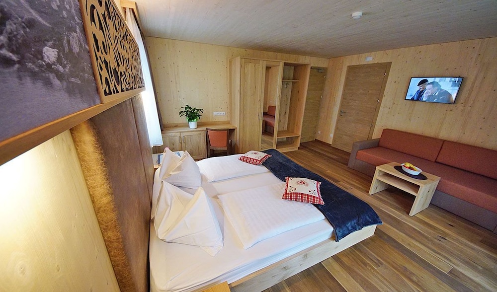 Excellent experience! The rooms are nicely decorated in wood, the smell when you walk into the room is very nice. The balcony (mountain view) is spacious with a place to sit and relax. Approximately 30 m from from the main road, a garage space with easy access to the rooms. The sauna is very nicely organized and has the access to outdoor whirlpool.