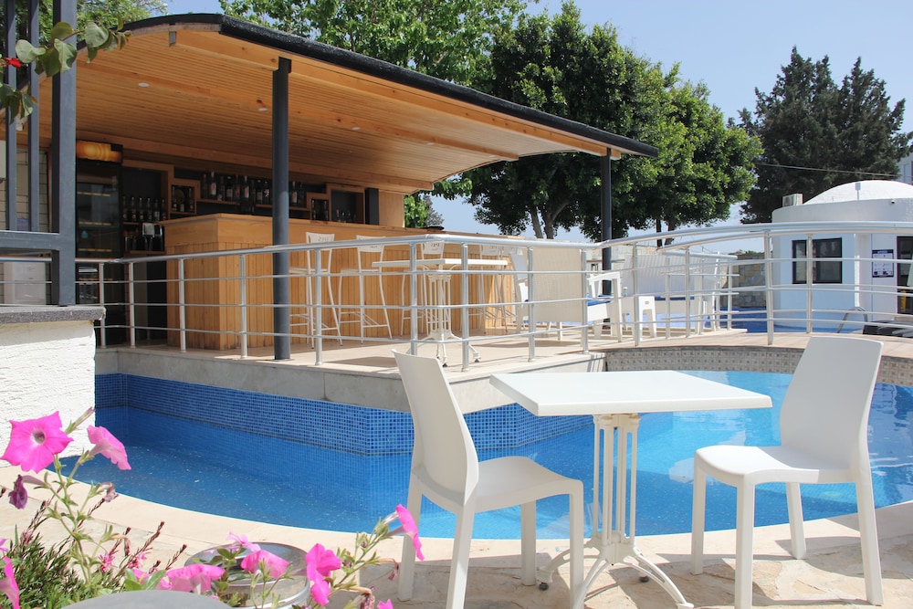 Basic accommodation. Pretty hotel and in a great location. Near a bus stop to Bodrum. Nice pool, but no shallow end. Manager excellent and attentive. Staff are helpful, but do not speak English.
