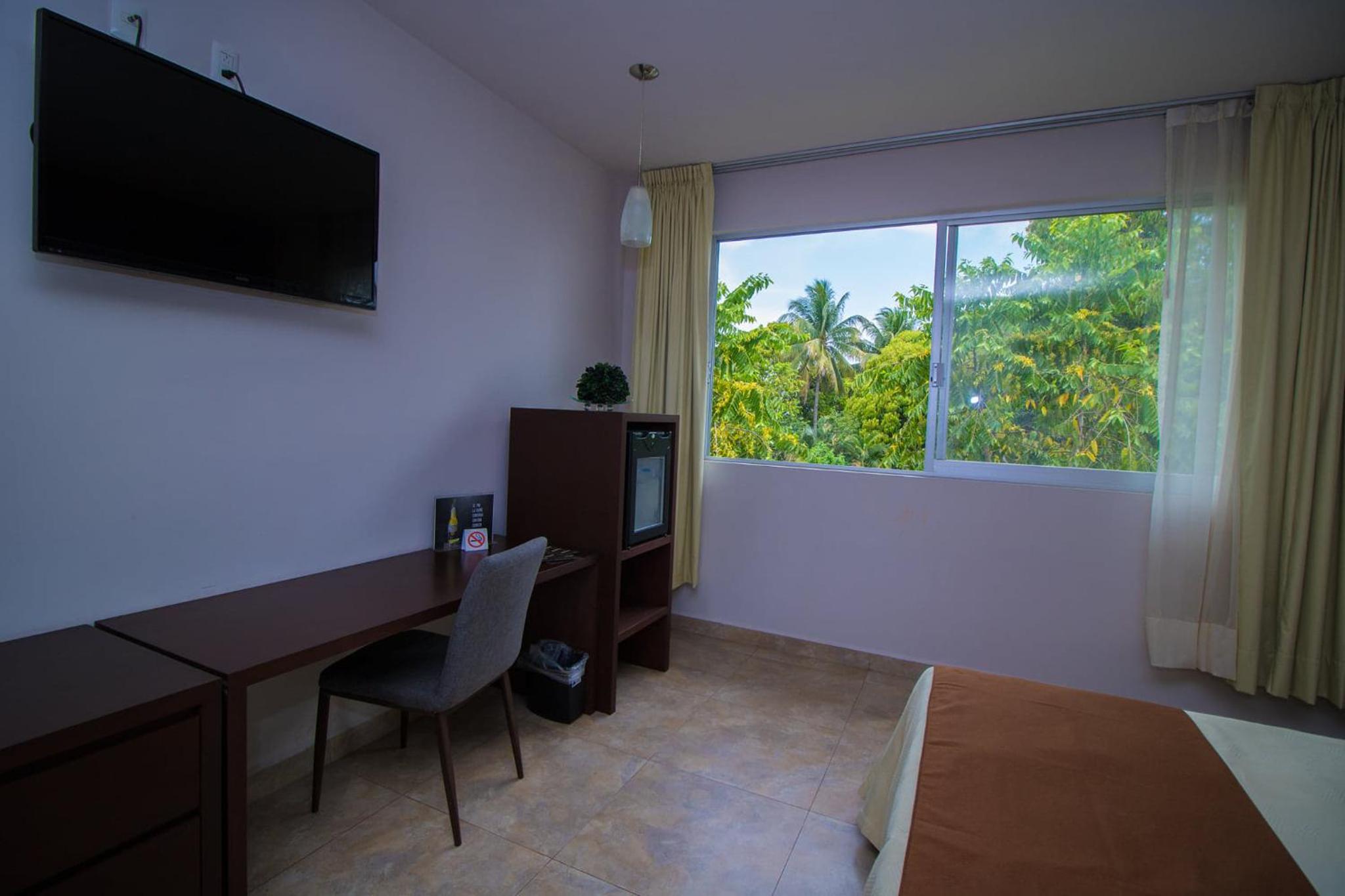 Empleados con poca atención, no funciona la tele pero te dan un control y luego te dicen que tú habitación no tiene derecho, el wifi se va continuamente, anuncian restaurante y no llega ni a fonda, para los controles dé la tele y el aire acondicionado te dicen que son $600.00 de deposito