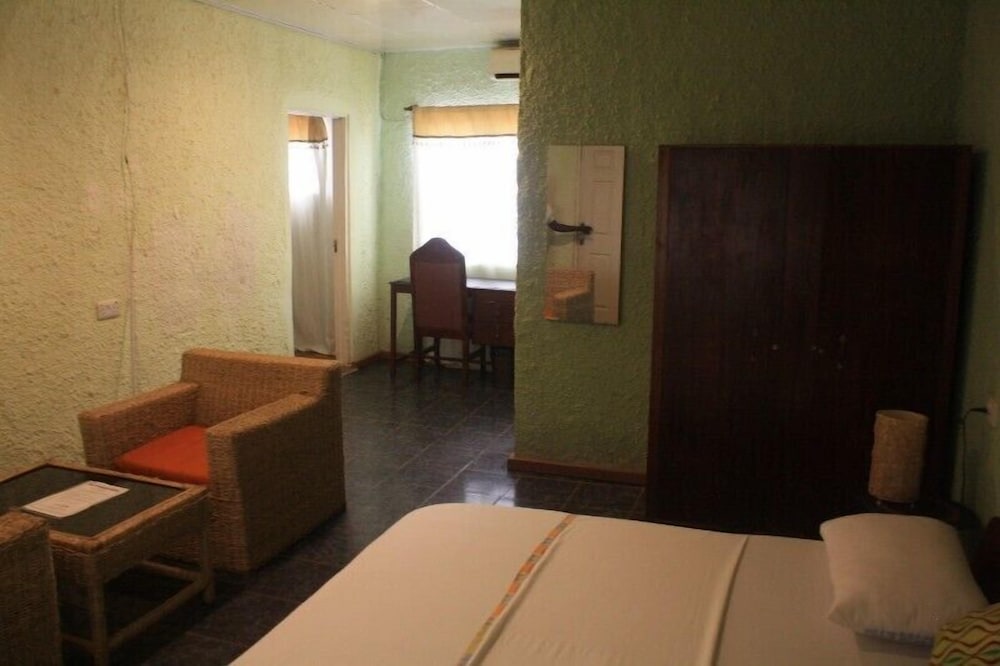 Seren atmosphere with geat staff. Beach was very vlean. Rooms fo mpt however have television. There were ants and other insects i do not know in the room.