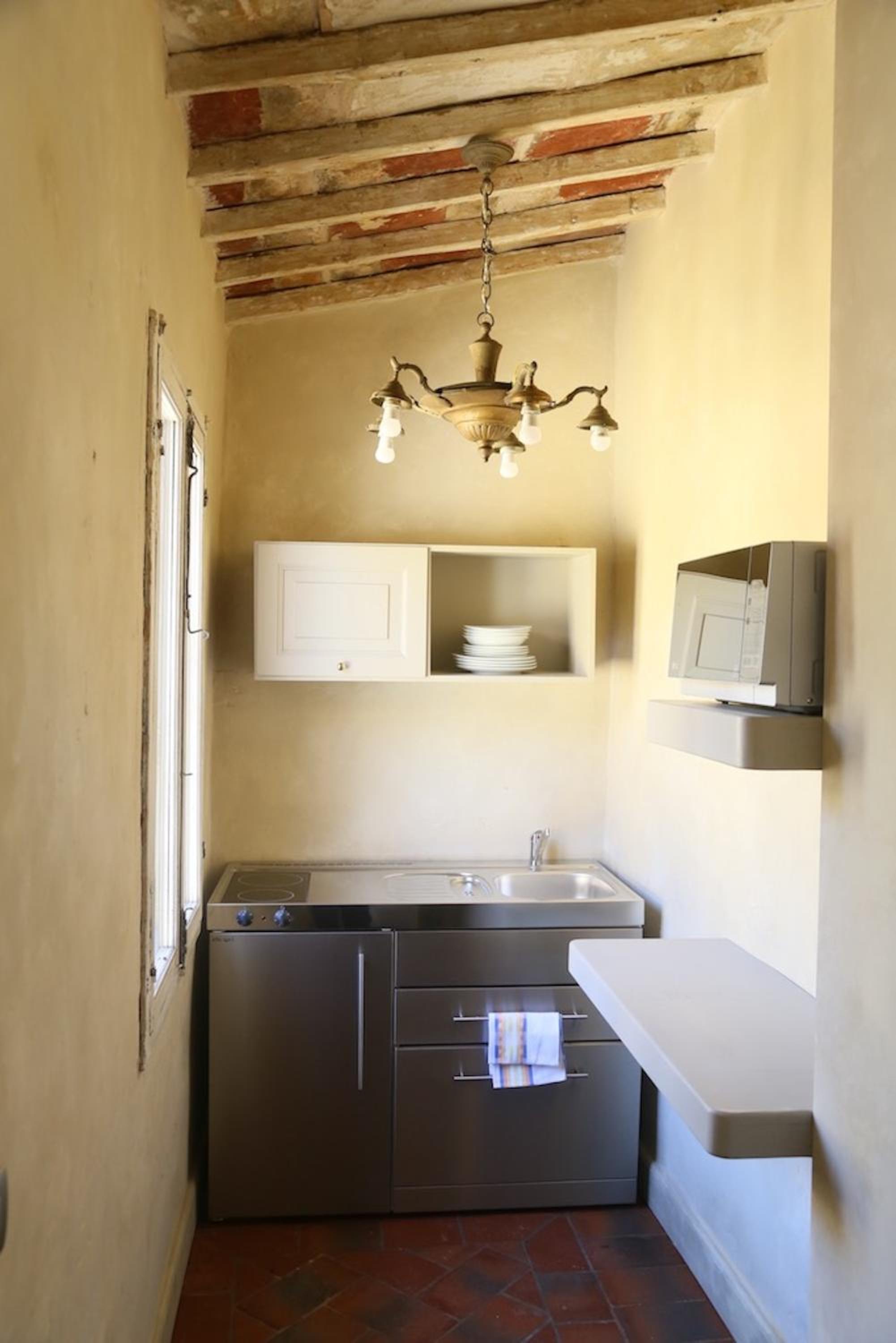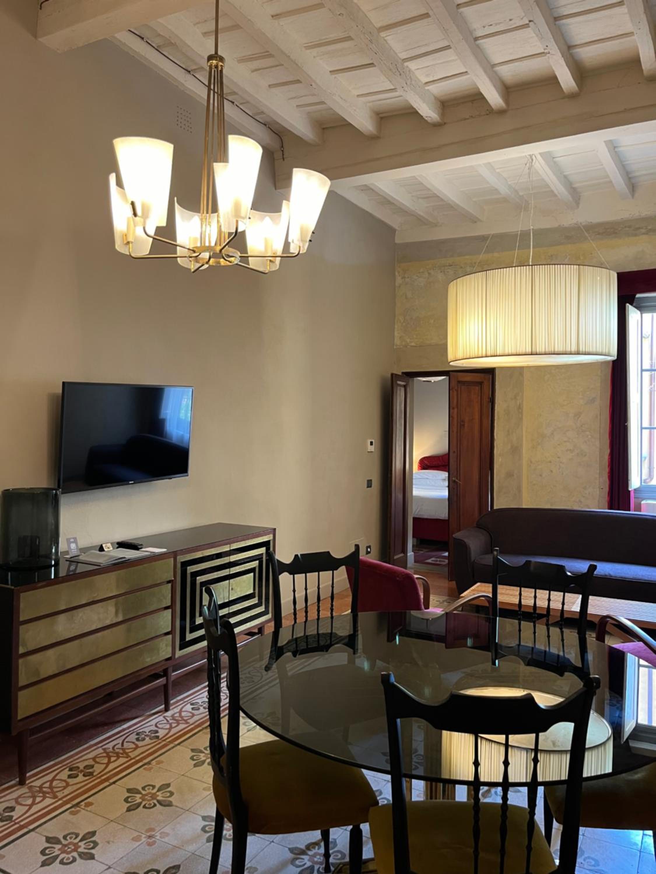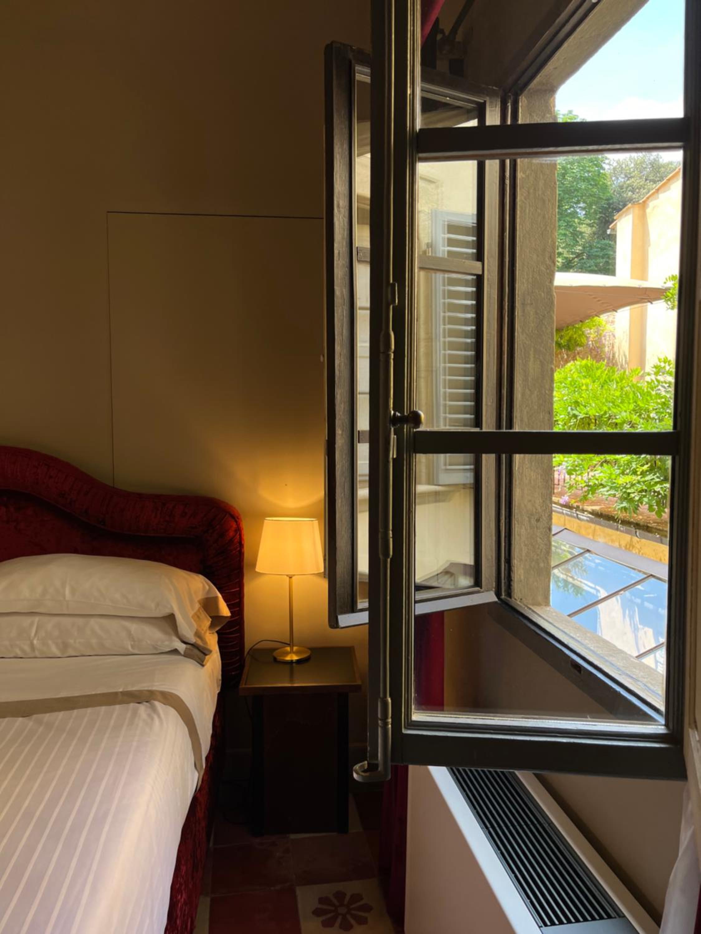 La habitación es tal como es en las fotos. Increíble. Tenía una cocina muy bien equipada para poder cocinar y no hacer todas las comidas fuera. La cama es comodísima y el armario ideal para 2 personas. Teníamos capsulas de café, té y leche para 2 tantas noches como teníamos reservadas y el baño tenía todo lo necesario. El hotel en sí es precioso. Está a 15 minutos andando de todos los landmarks en Florencia y muy bien rodeado de bares y restaurantes buenísimos.