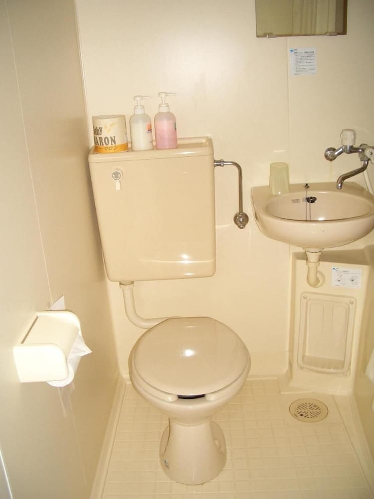 ユニットバスはコップ一つに歯ブラシ2本、100均で買った?ようなリンスインシャンプー&ソープ以外はゴミ箱すらありません。