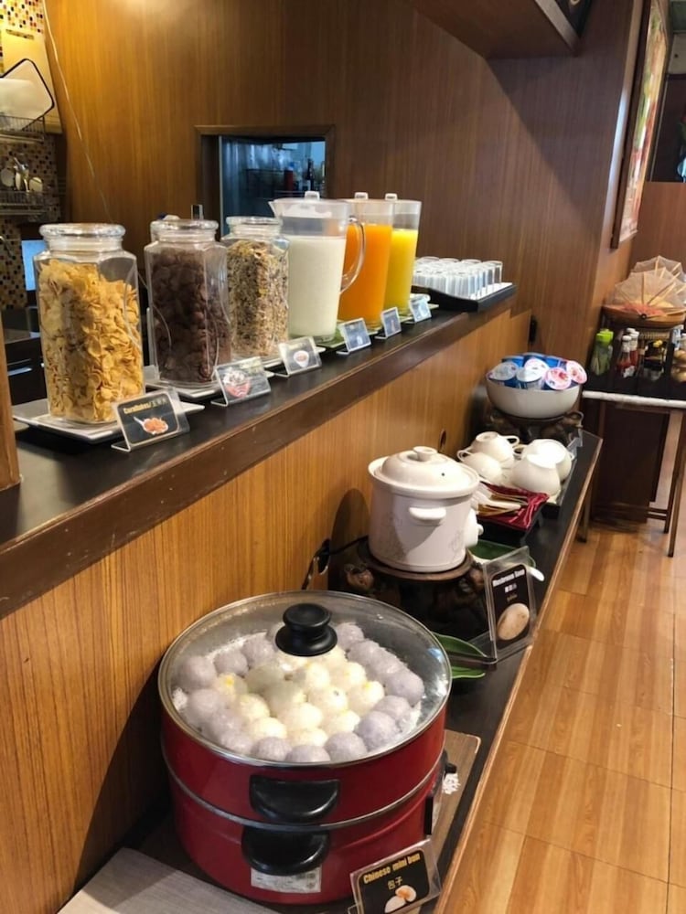 A basic continental breakfast is included, although we didn't eat at the hotel. The hotel is close to many cafes and shops. You can easily walk to any of the dozens of temples within the old city walls.