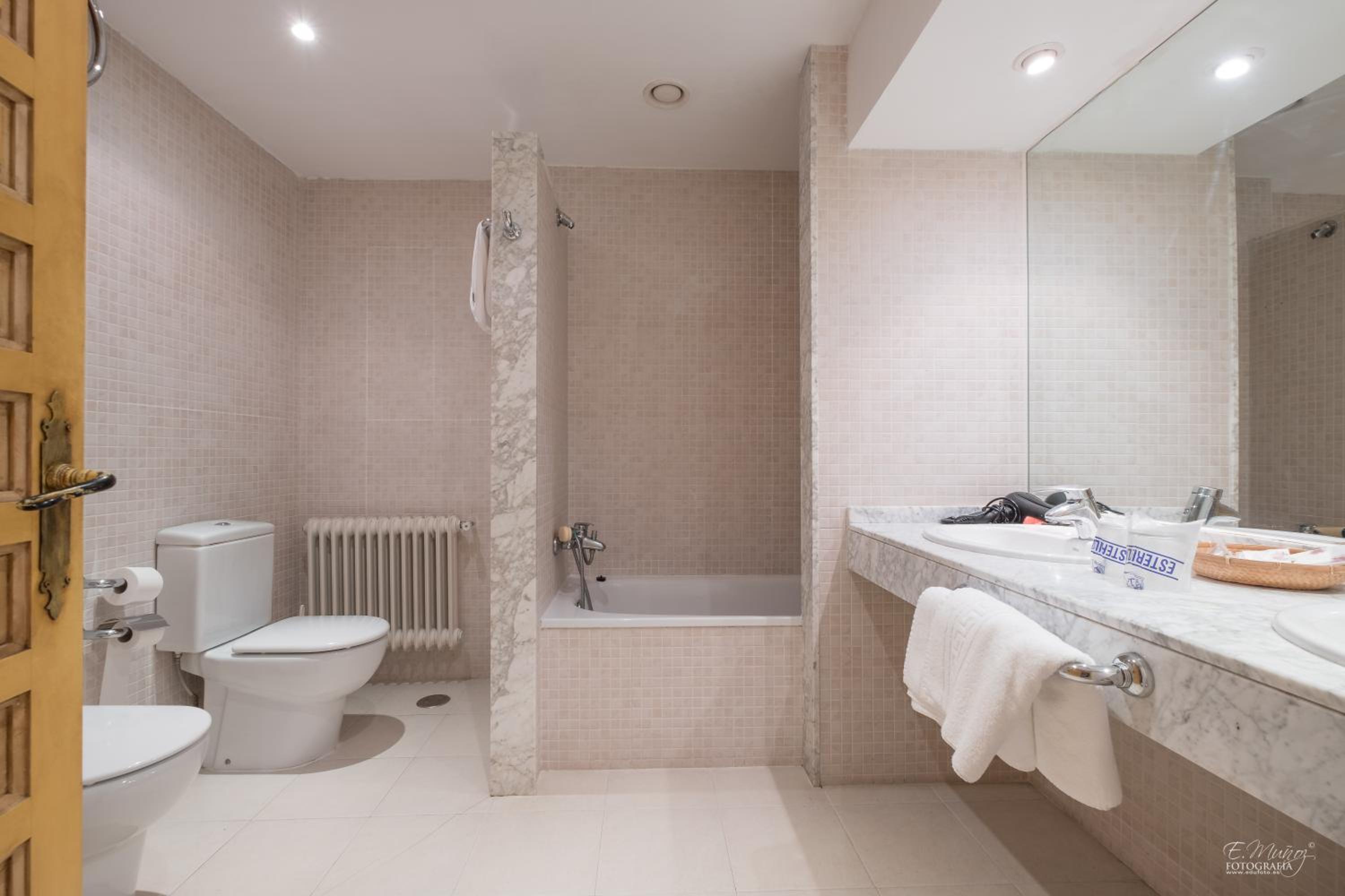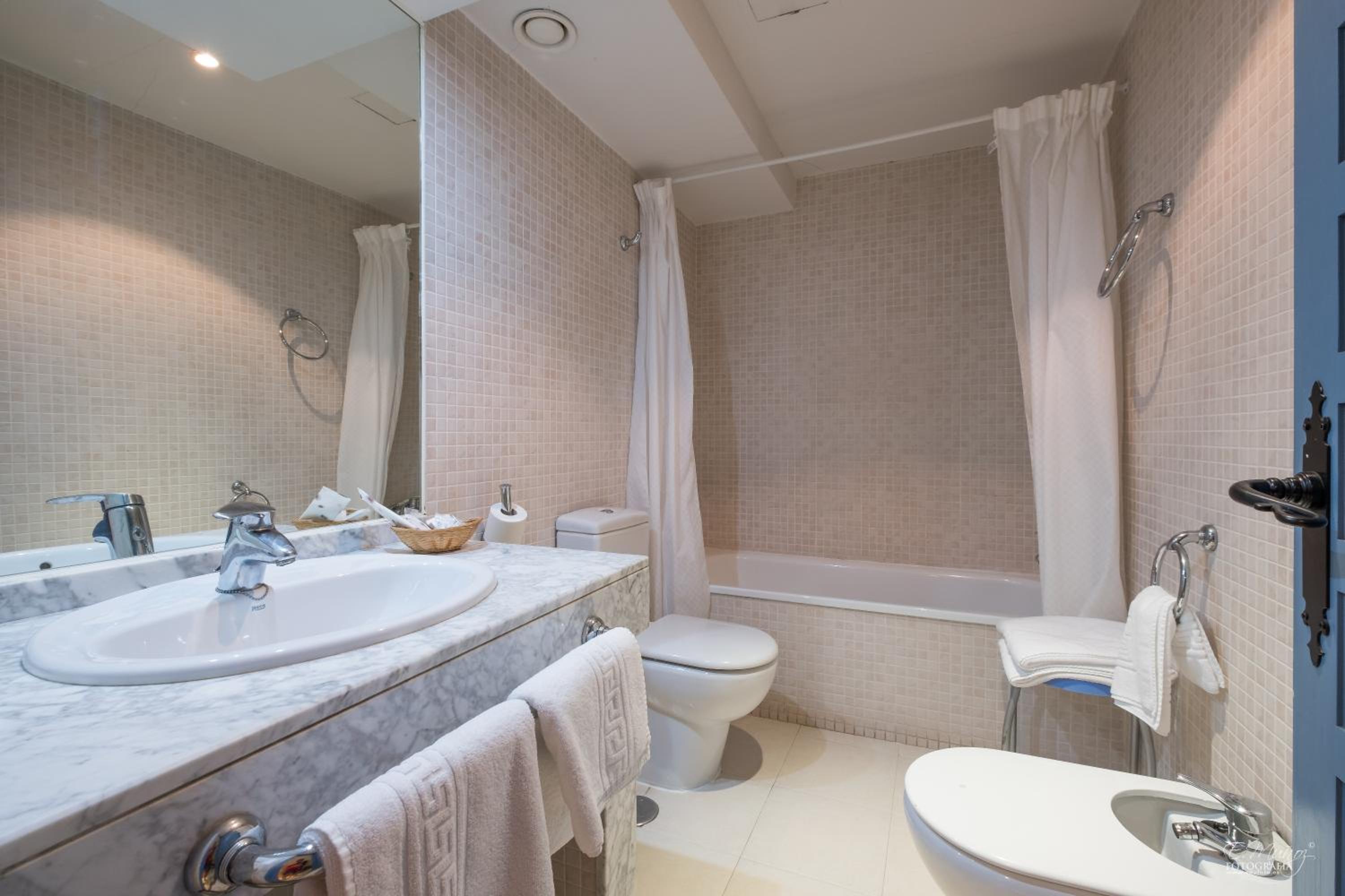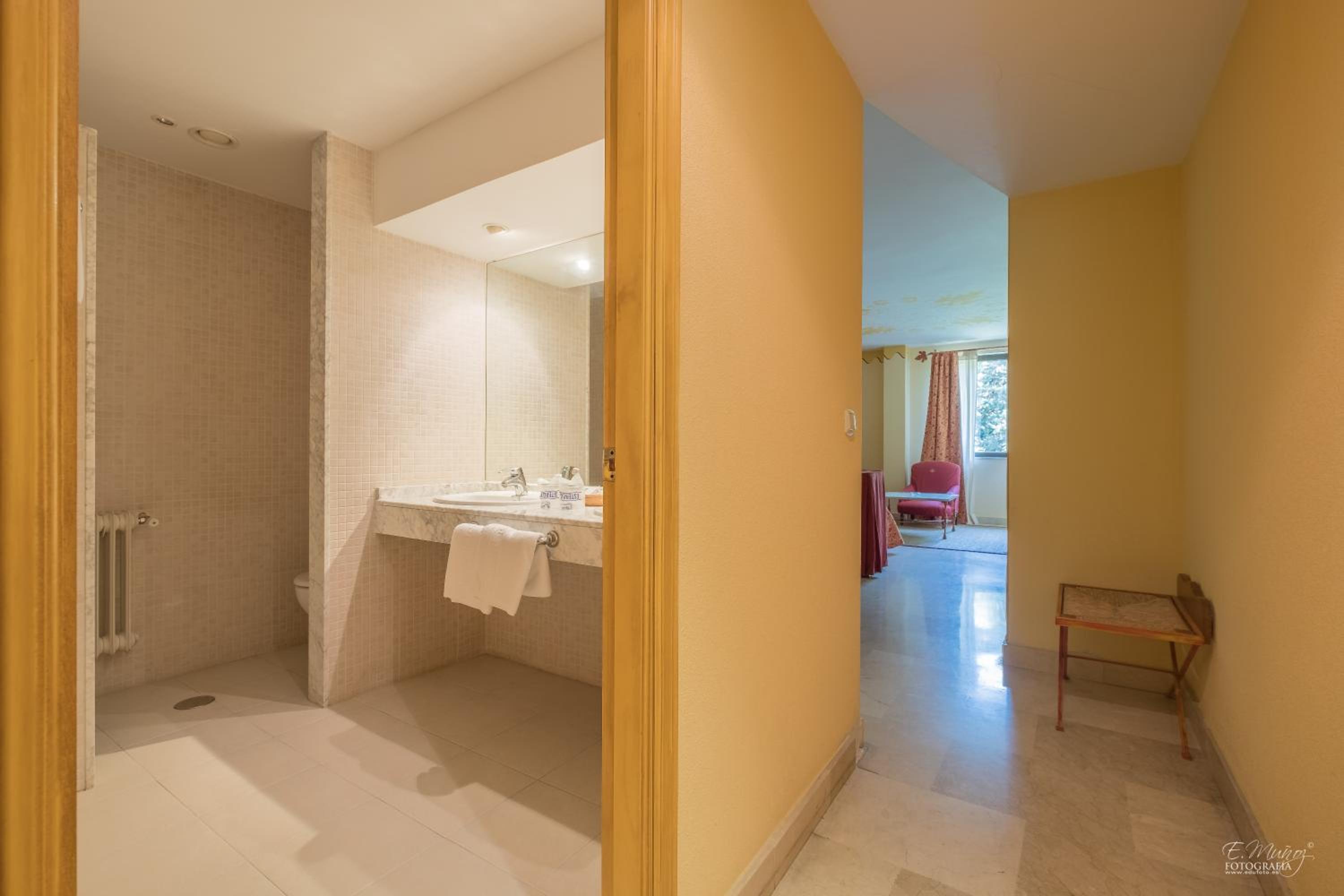 Teníamos la suite junior y para el precio que tiene(sin desayuno) es muy básica y los muebles muy antiguos y desgastados