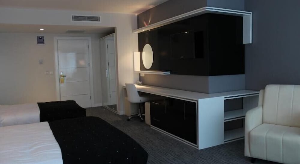 Oda halıları eski ve birçok yerinde büyük lekeler vardı. Mobilyalar çok eski ve tozluydu, temizlik yapılmadan bize tahsis edilmiş. Banyo çok eski ve banyo duş kabininde yerleşmiş aşırı lekeler ve izler vardı.Banyo silikonları birçok yeri kararmıştı. Tuvalet kağıdı yoktu istedim sonradan getirdiler. Yatak temiz olmasına istinaden bir gece zor kaldık ve ertesi gün oteli değiştirdik. Havuz da bone zorunluluğu olmasına rağmen kimse kullanmıyordu ve şezlong altlarında sigara izmaritleri vardı ve pisti. Soyunma kabinleri pis ve hertarafı aşırı ıslak ve havlu , peştemal sağa sola atılmış bir vaziyette sorumlu oturup telefona bakmaktan vakit bulamadı anlaşılan. Kapalı otopark mevcut giriş ve içerisi biraz dar . Resepsiyon personeli kibar ve ilgiliydi. Kahvaltı çeşitliliği yeterliydi.
