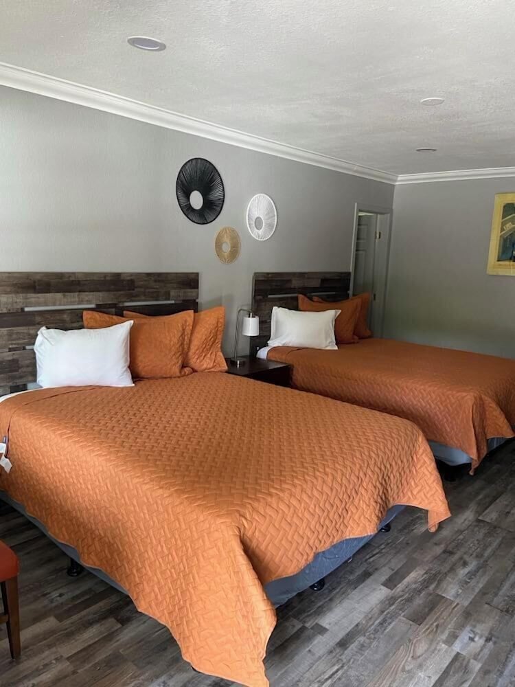PLEASE DO NOT STAY HERE❗️Firstly, when we first walked into the room it smelled like cigarettes. There was a hole in the door that was supposed to be a peephole but was just a hole. There was only 1 air-condition, so the second bedroom was extremely warm, we had to buy a fan for it. Next, there was no smoke detector and there was absolutely no amenities such as a hairdryer or straightener. There was one bar of soap and one small bottle of shampoo. There was also no hangers in the closet space. ❗️Most importantly, we stayed here because there was a "continental" breakfast included, but all they gave us was a few store bought danishes and coffee. Another thing is that there were suspicious people inside of the hotel area with their clothes unpacked and stuff everywhere. The tv remote barely worked and there were very loud plastic covers on the mattresses. The only good thing about this hotel was the housekeeping woman! She was very pleasant and helpful.
