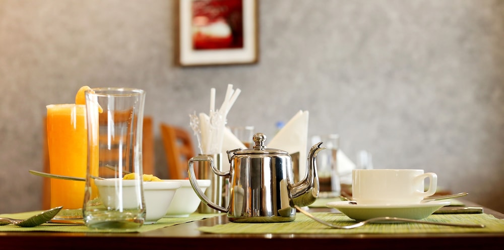 Good breakfast choice of Indian or eggs as omelette or scrambled, brown bread 👍 nice coffee plus cereals we were very pleased with it. Is only 4 minute flat walk to Ernakulam town station. There’s a hotel with bar for beer 5 mins away and plenty of Indian and western style restaurants nearby.