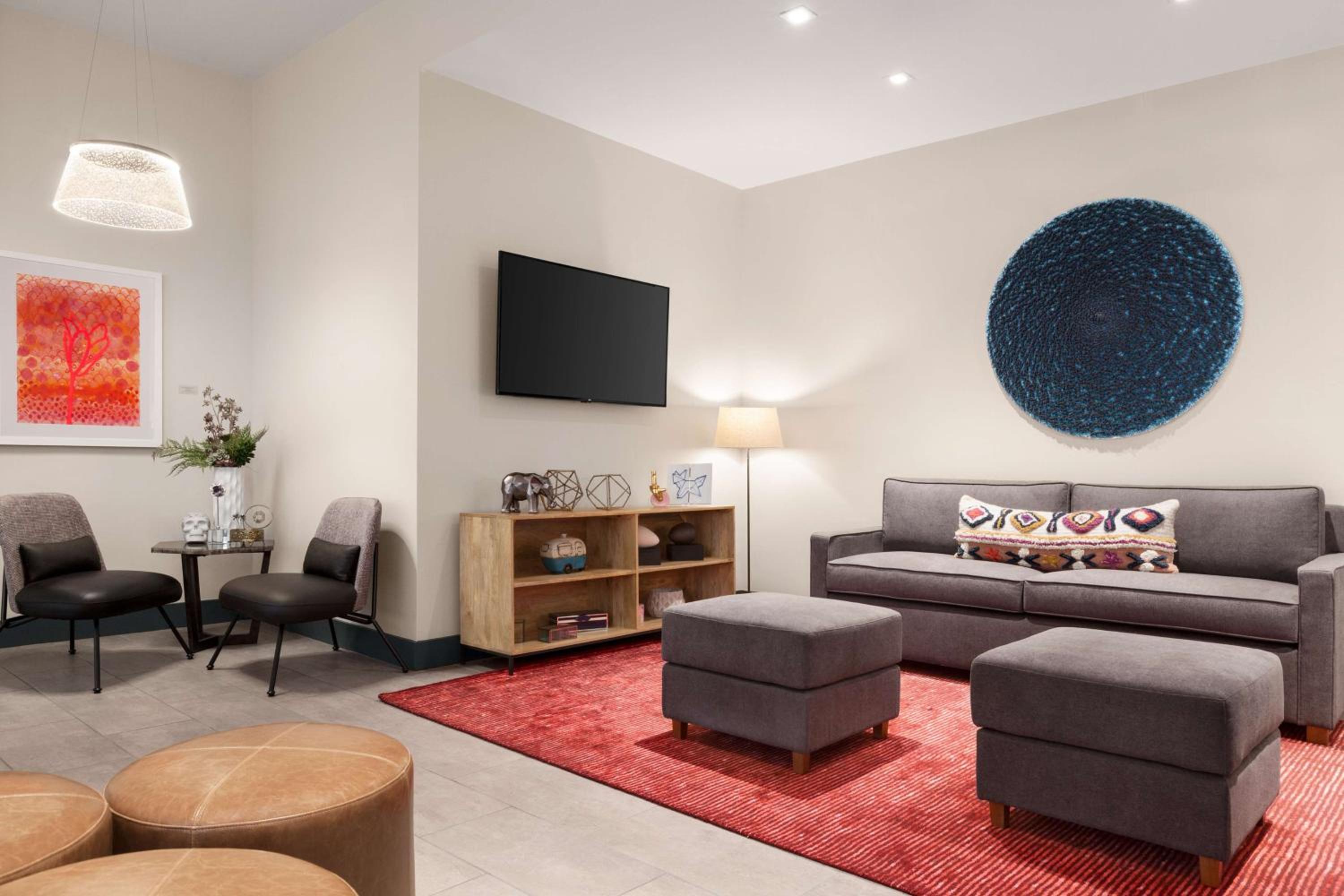 Room is very cramped. To pass by the foot of the bed you have to move the desk chair out of the way. Also, the one place to charge electronics is on the side of the desk right next to the wall. Very hard to access. You have to feel your way to plug a charger in. On the Sunday I stayed the TV system for the whole hotel was out. Nothing was said at check in. A serious matter on a Sunday during football season. It took a pointed discussion to get some reduction in fees for the inconvenience. Somewhat reluctantly they comped the 25-dollar parking fee.