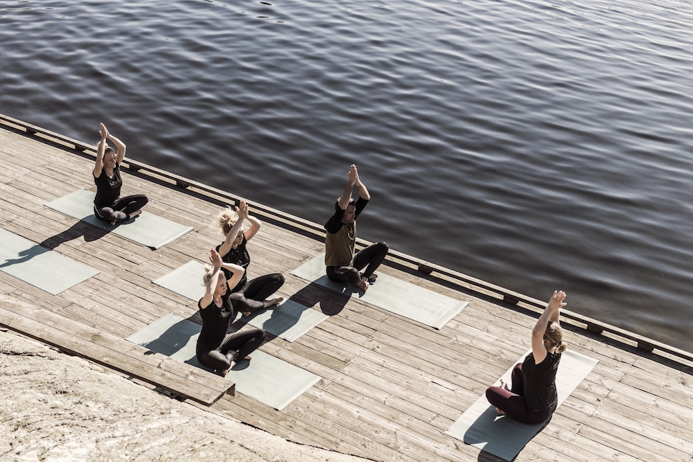Es gibt eine Badestelle, Grillstelle, Sauna auf dem Wasser, Bootsanleger, Boote und Fahrräder auszuleihen, einen kleinen Innenpool und Wellness-Anwendungen.