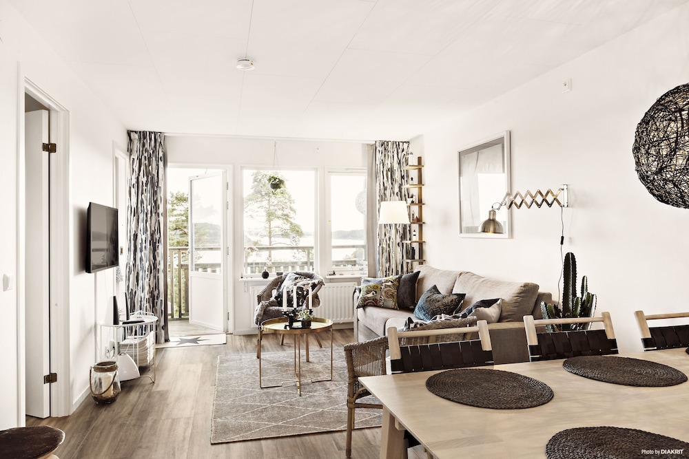 Ett fantastiskt boende med underbar utsikt. I lägenheten finns allt du behöver oavsett om du stannar länge eller bara över natten. En stor balkong/terass/uteplats finns där man kan sitta och njuta av vyerna. Vi satt ute på kvällen och tystnaden var påtaglig. Det enda vi hörde var lite fåglar. Oerhört avkopplande.