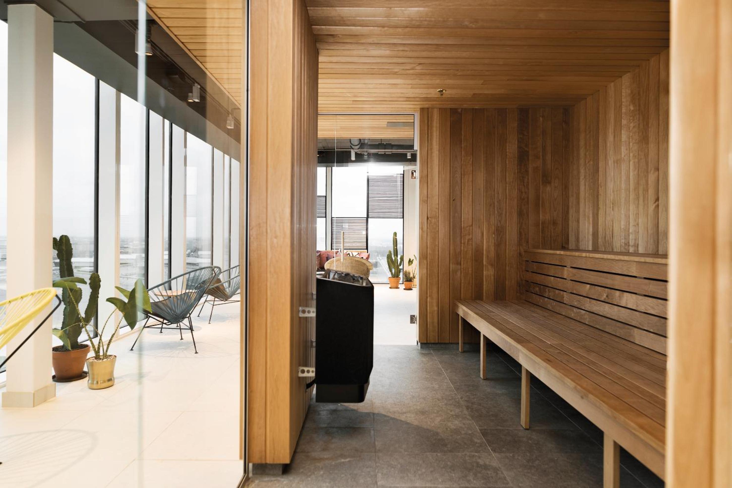 Enjoy stunning city views while working out in the gym, unwinding in the sauna, or relaxing in the designated area.