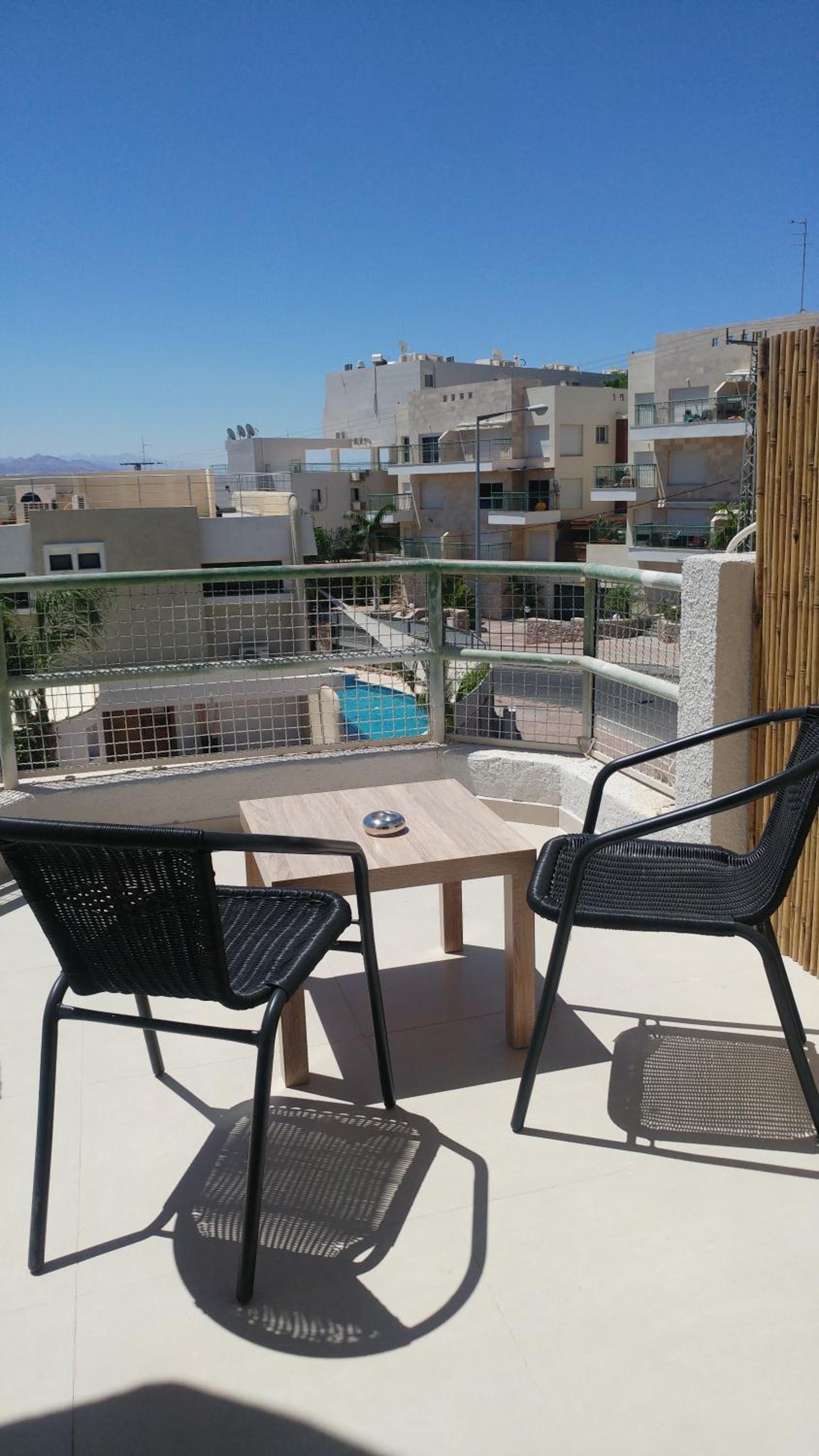 Были в Эйлате и остановились здесь, вид на море с балкона просто волшебный! Апартаменты уютные, с мини-кухней, всё чисто и аккуратно. До пляжа 10 минут пешком, а вечером приятно посидеть на террасе с барбекю. Очень понравилось!