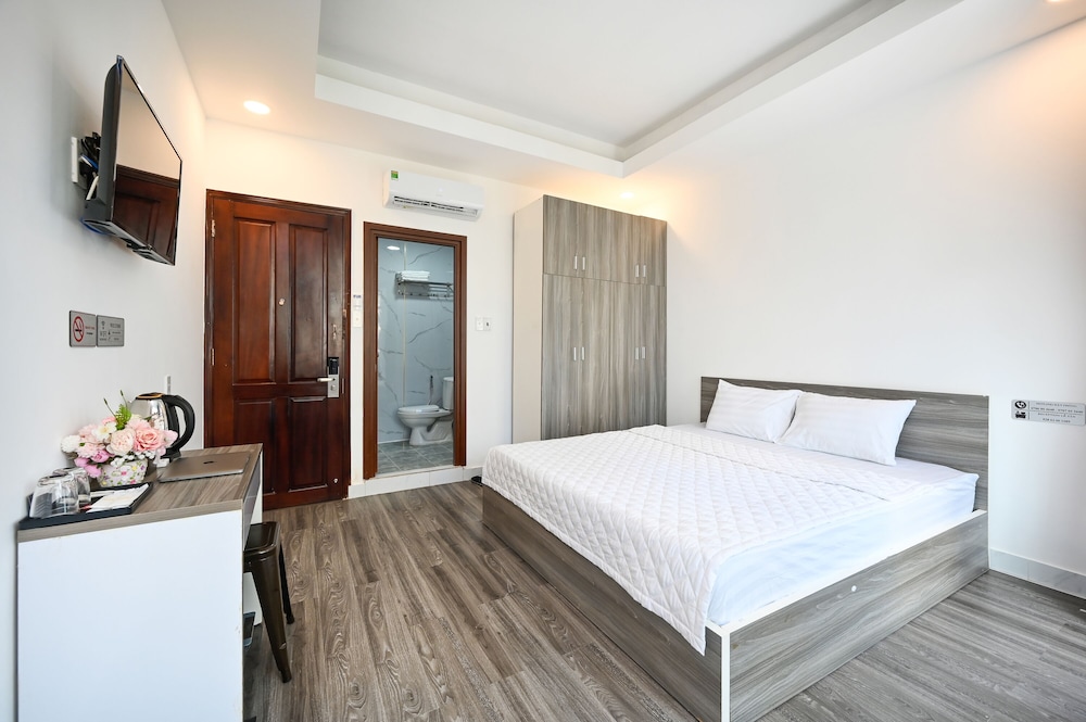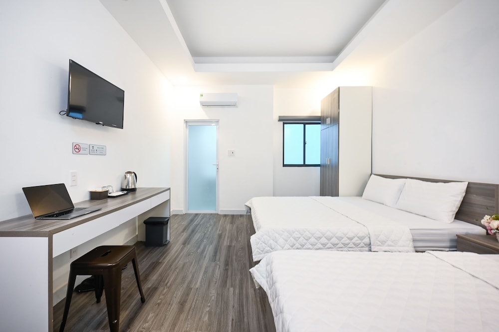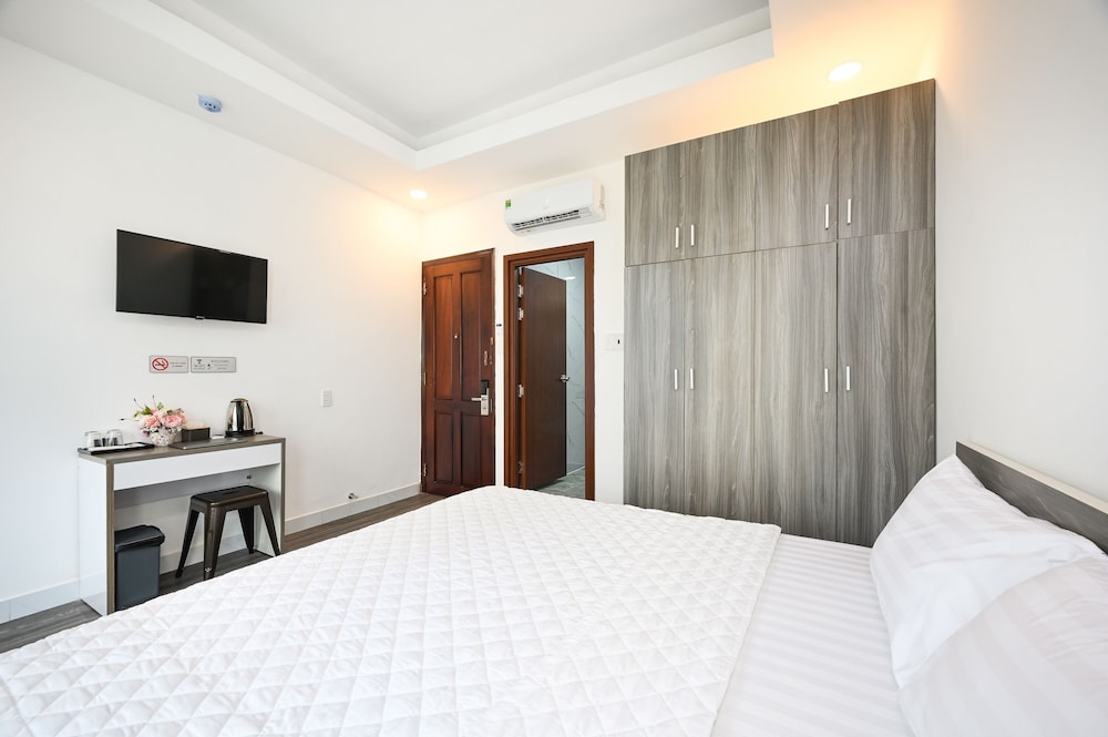 The staff were very kind, polite and willing to help when we needed something. Good location. Within walking distance to the Tan Son Nhat Domestic & International Airport. Facilities and rooms were good for the price. Elevator was available so that we did not have to carry heavy luggage on stairs. The hotel provided transportation to the airport and other places in the city for a charge that in some cases were slightly cheaper than Grab. We liked the hotel such that we came back for two more separate stays during our recent trip to Vietnam. Thanks to Mr. Duc and other staff members for our hospitality.