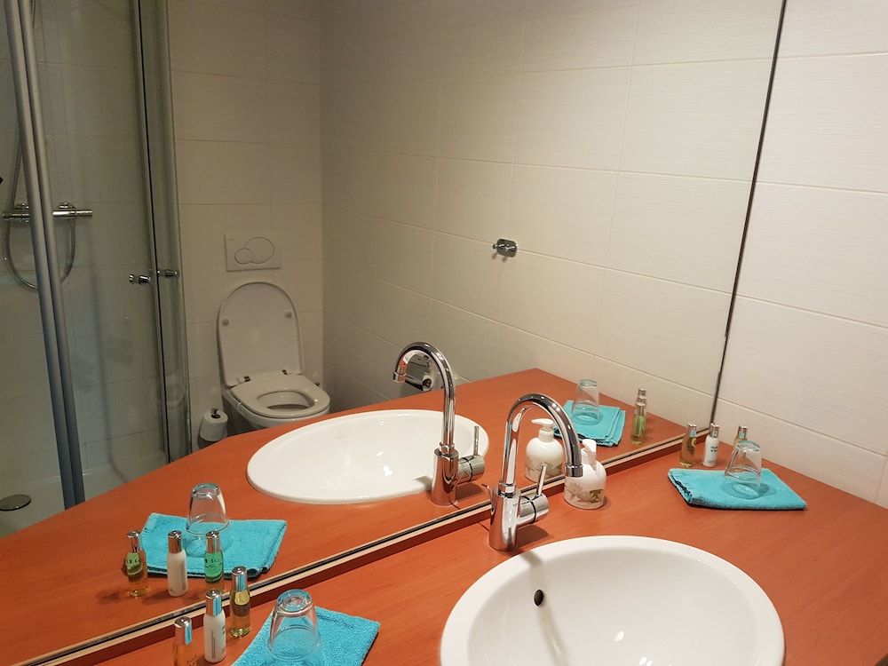 Zeer vriendelijke ontvangst, heel ruime kamer, heel grote en propere badkamer, uitgebreid ontbijt en zeer vriendelijk mevrouw die koffie en thee bracht en dan ook de sleutel terug in ontvangst nam. Enig minpuntje : geen lift en steile trap.