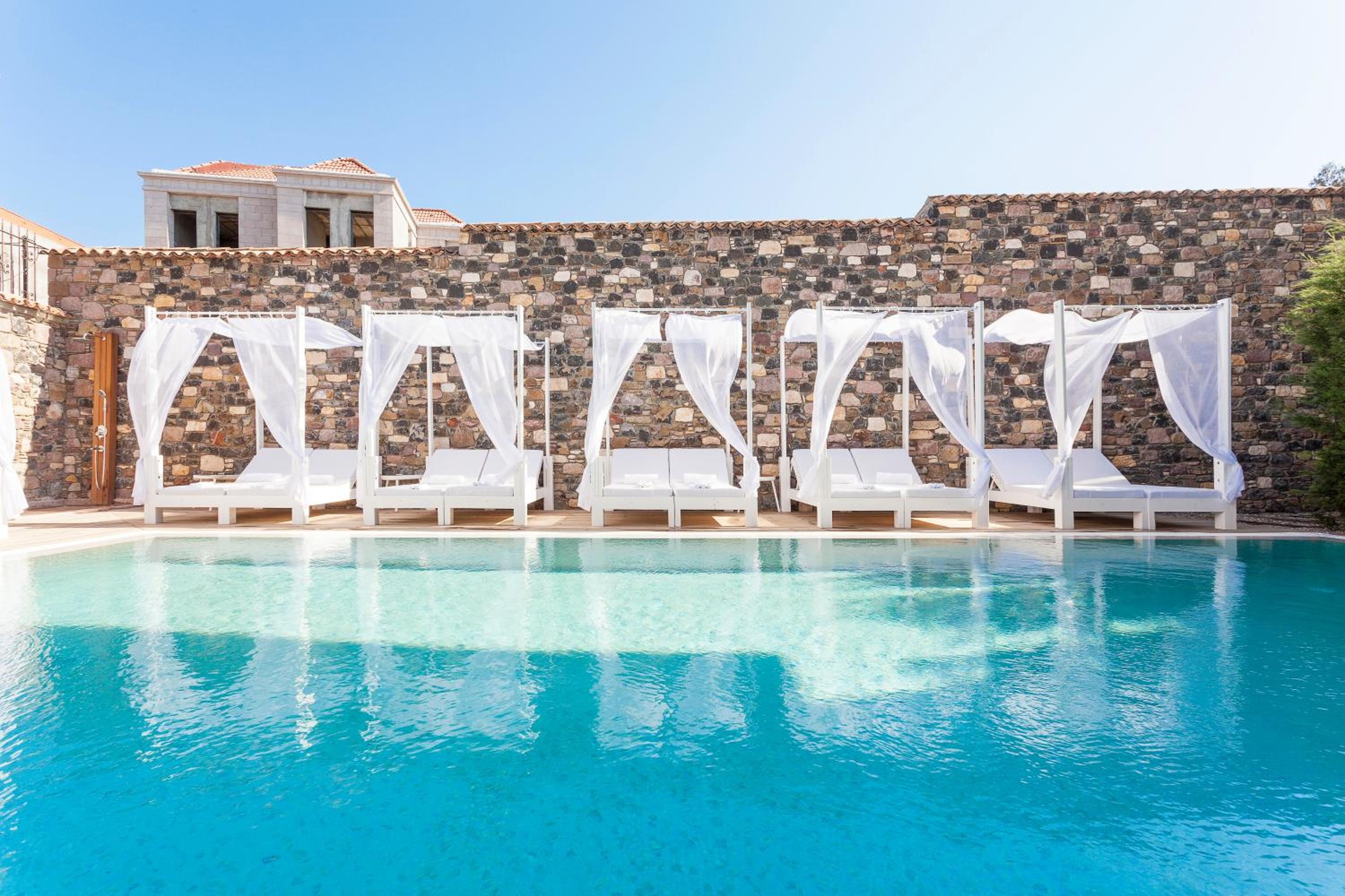 Experience a tranquil stay at Cunda Pur Beyaz Hotel, surrounded by lush gardens and featuring an inviting outdoor pool. Relax in the serene atmosphere and soak up the sun on the terrace while enjoying garden views.