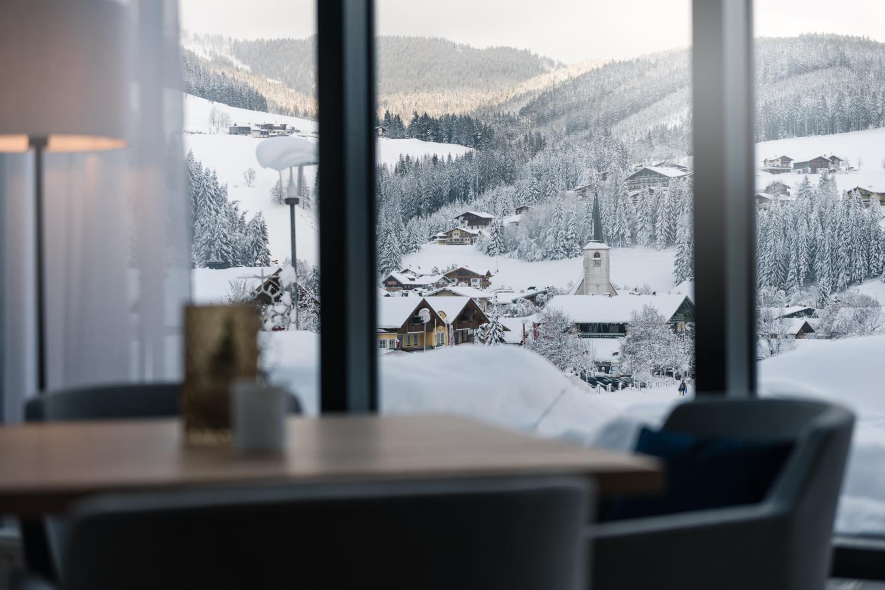 Ruhige Lage im kleinen Filzmoos, alle Restaurants, Lifte, Geschäfte fußläufig. Toller Spa-Bereich, alles sehr sauber und gemütlich, weil's ein kleines Hotel / Lodge ist. DAs Personal is sehr freundlich, schon fast familiär, das Frühstück klasse. Insgesamt eine sehr erholsame Atmosphäre zum Erholen.