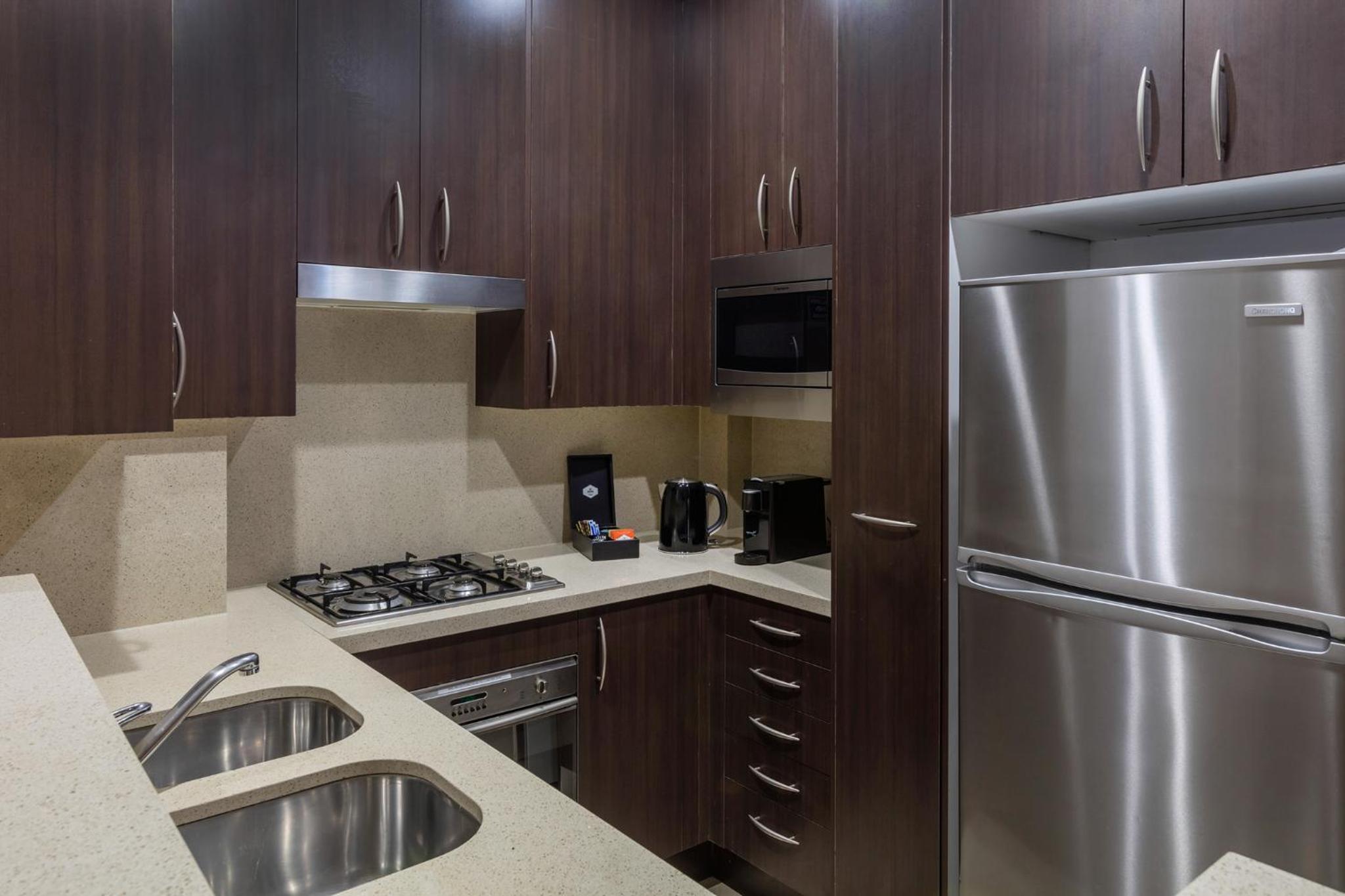 If you do not arrive by 23:00 local time on your arrival date without previously advising the property, your reservation will be canceled and the total cost of the accommodations will be charged. Please note that cash is not accepted at the property. All payments must be made by credit, debit or EFTPOS card. Unless paying now, payment for entire stay and any incidentals are required upon arrival at the hotel. Card payments: Please note that there is a 1.66% charge when you pay with Visa, Mastercard, American Express, Union Pay or JCB card. All bedrooms (excluding studio & mini suites) have a king-zipped bed that can be split into 2 single beds. Every three (3) days, your suite will receive an Express Service where we will make the beds with existing linen, replace towels, replace finished amenities, stack the dishwasher and empty the rubbish. For stays longer than 7 nights, your suite will receive a Full Service and be fully cleaned, including all linen changed once every seven (7) days. A valid ID must match the credit, debit or EFTPOS card upon check in. Please note that this property requires a credit, debit or EFTPOS card pre-authorization upon booking.