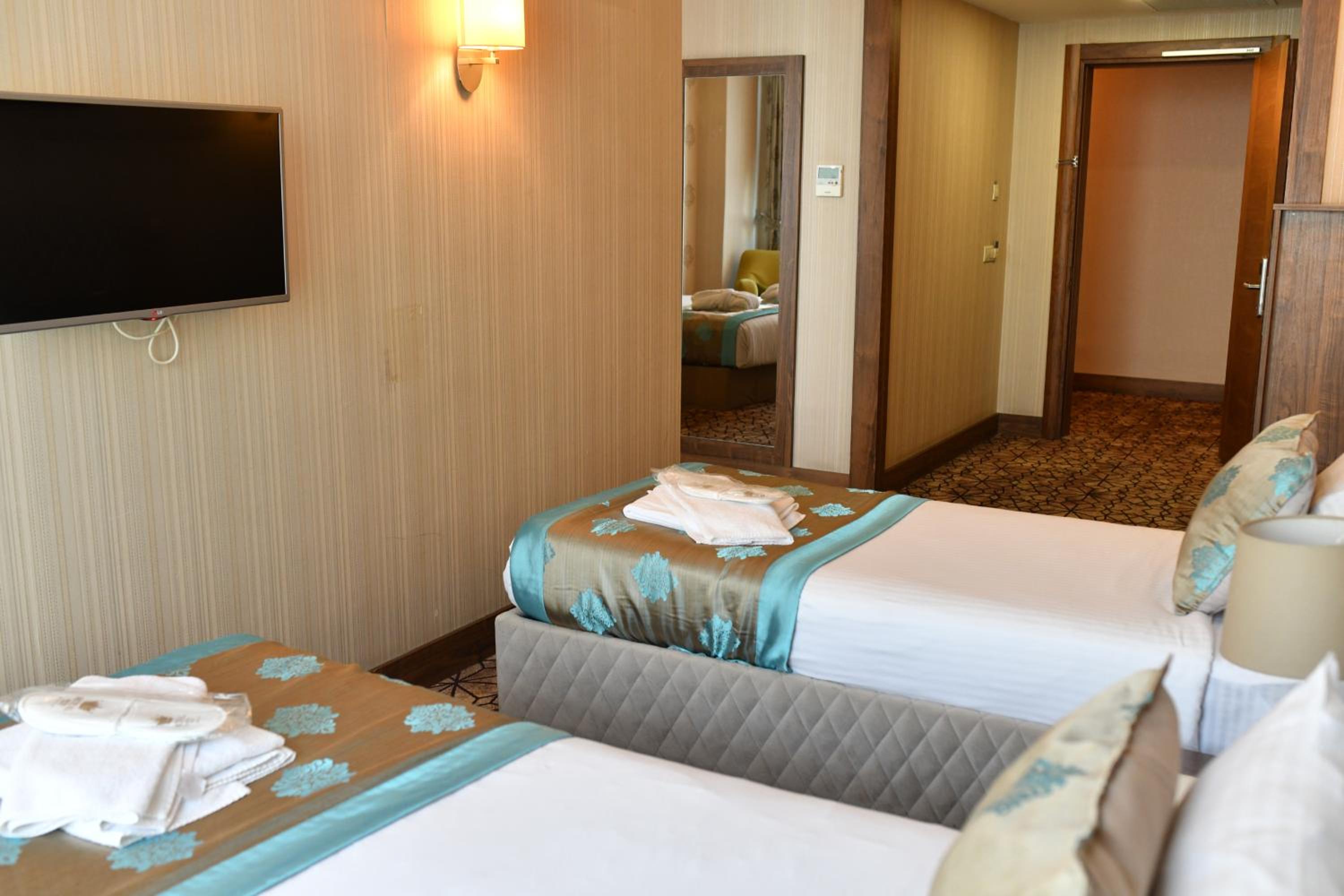 Experience comfort and convenience at Royal Hotel Inegol with well-equipped rooms featuring modern amenities like air conditioning, minibar, and free WiFi. The private bathrooms are stocked with complimentary toiletries for a relaxing stay.