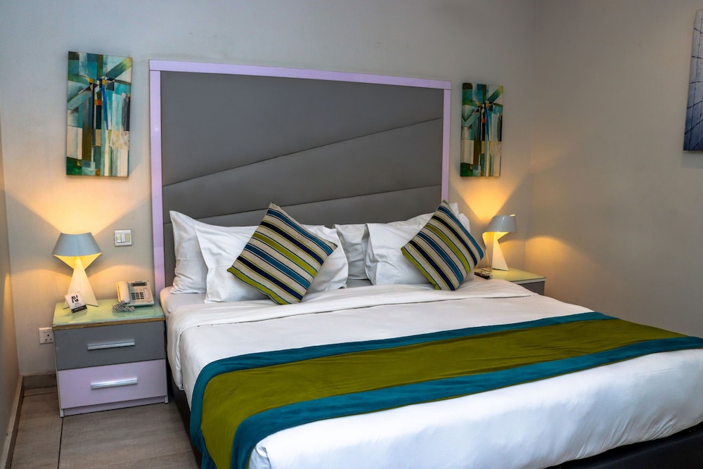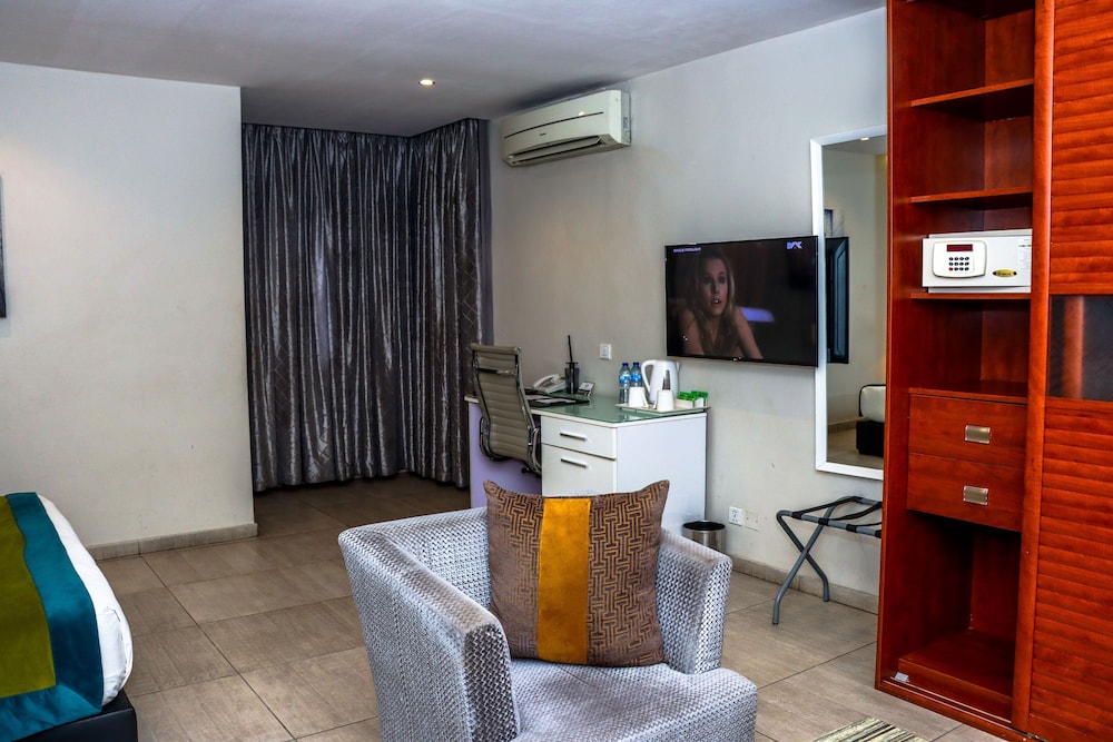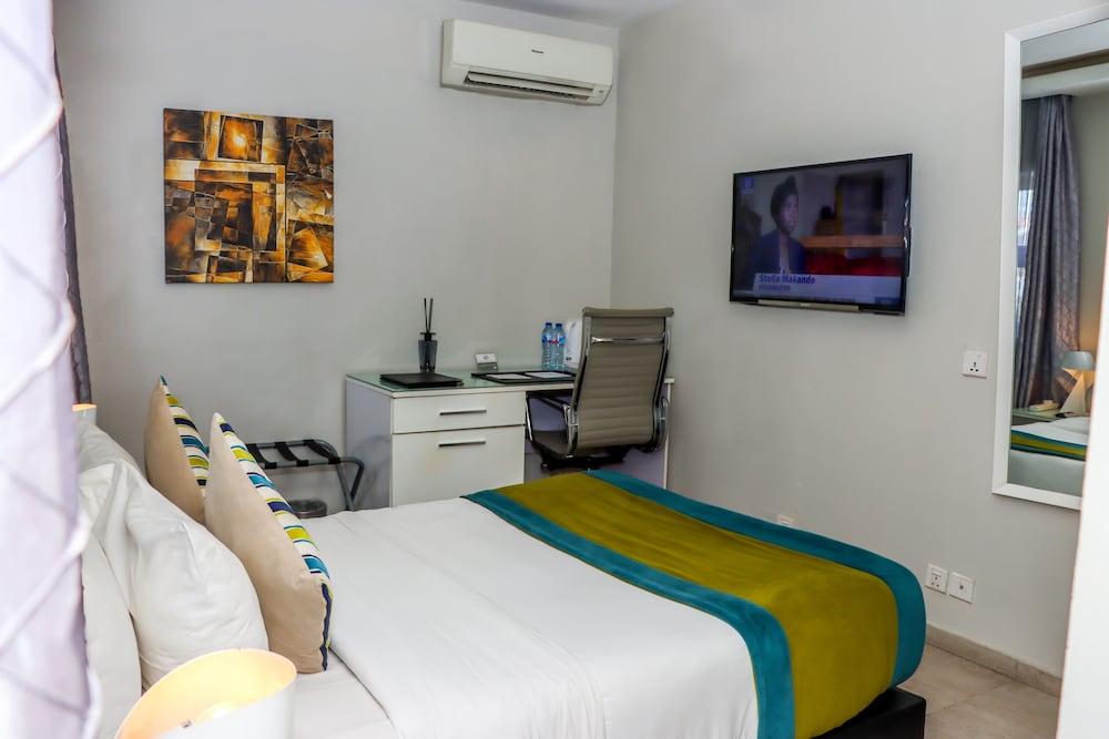 Good location in Lekki. Family holiday and we had 4 rooms on different floors and parts of the hotel. Check in was okay but staff need to be trained to be warmer and sharp when receiving guests. I had been travelling for hours and was exhausted and the lady at checkout looked bored and tired. My room was not very clean and I showed housekeeping dust and dirt which they took the time to clean the following day. The sheets are brown and yellowed and should be replaced. The chair was dirty and stained. The fridge smelled like something had died in there and despite the complaint this was not addressed by the hotel. The one thing I liked was that the air-conditioning was cool but not all the sockets were working and so charging devices was a game of chance.