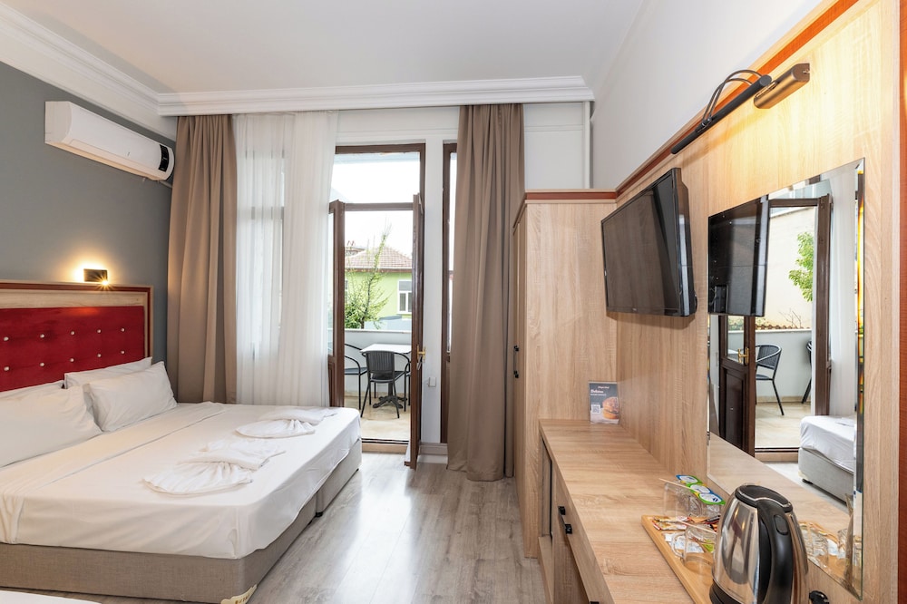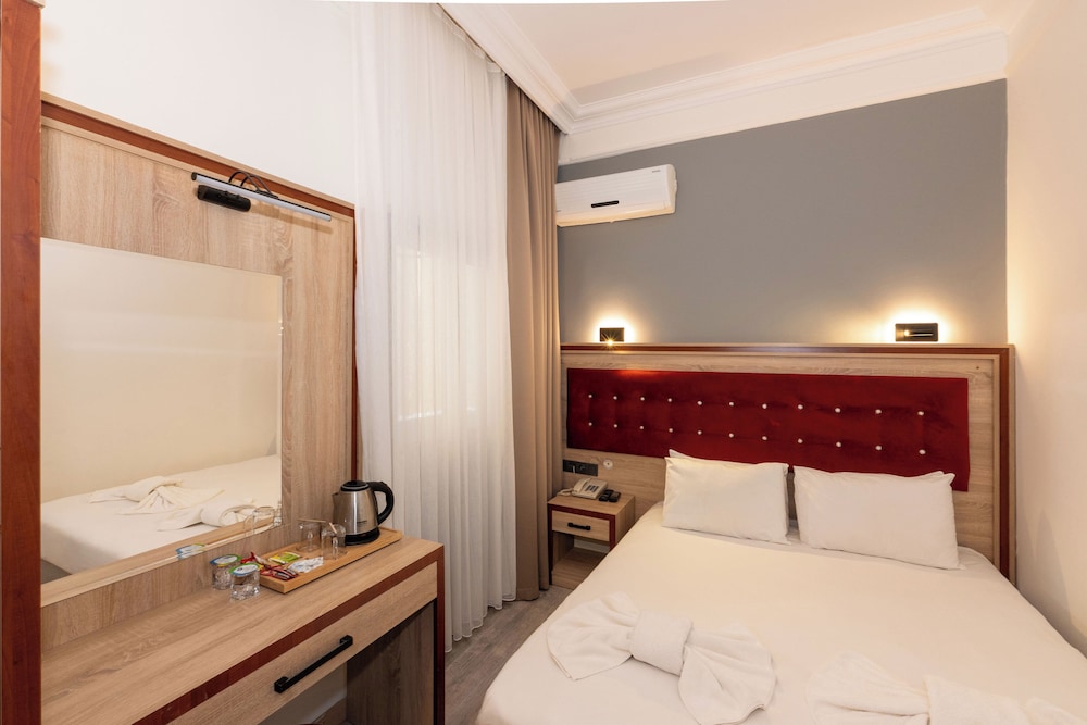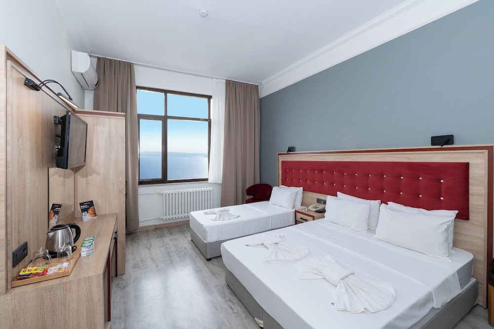 Fotograflardaki gibiydi. Deniz manzarası güzeldi. Bulundugu bolge gece saatlerinde cok canlı. Rahatlikla aile olarak tercih edilebilir. Odada bir iki eksik vardı, hemen temin ettiler. Odada balkon olması cok keyifli oldu. Sabah kahvaltisi çok güzel. Acik büfe ve yeterli secenek var. O bölgede kahvaltiya gitseniz kisi basi 700-1000 aralığında ödersiniz. Kahvaltidaki hanimefendi cok güleryuzluydu. Firindan yeni çıkarttığı yiyecekleri masalara servis yapması cok hoş bir detaydi. Temiz oda ve guzel kahvaltı icin teşekkürler.