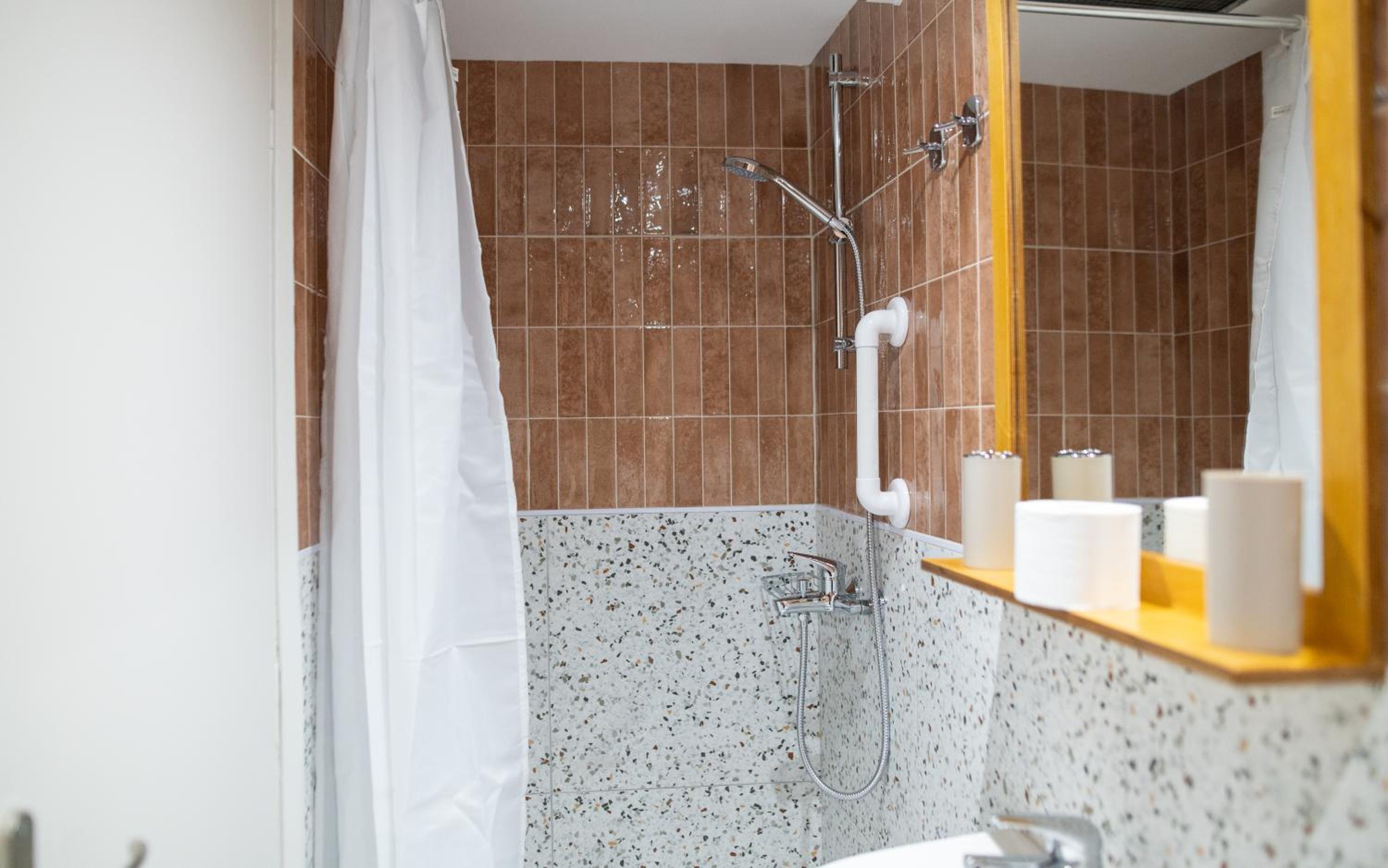 Duş kısmı perdeli, konfor yok