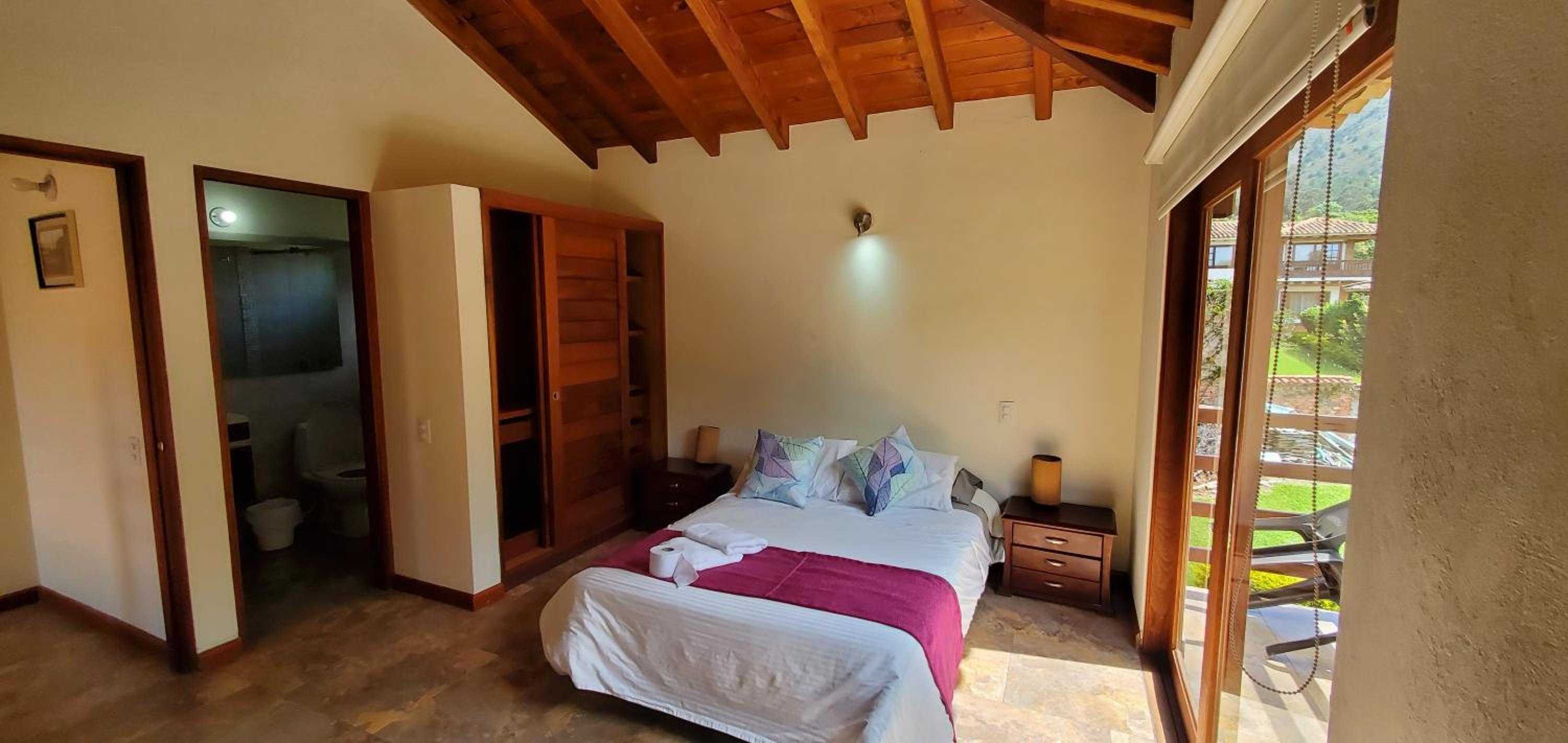 La ubicación, en carro no es tan lejos pero no es tan cerca para ir caminando. Pero si lo que busca es descansar alejado de la plaza central, este es lugar