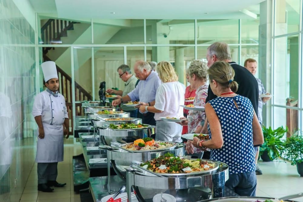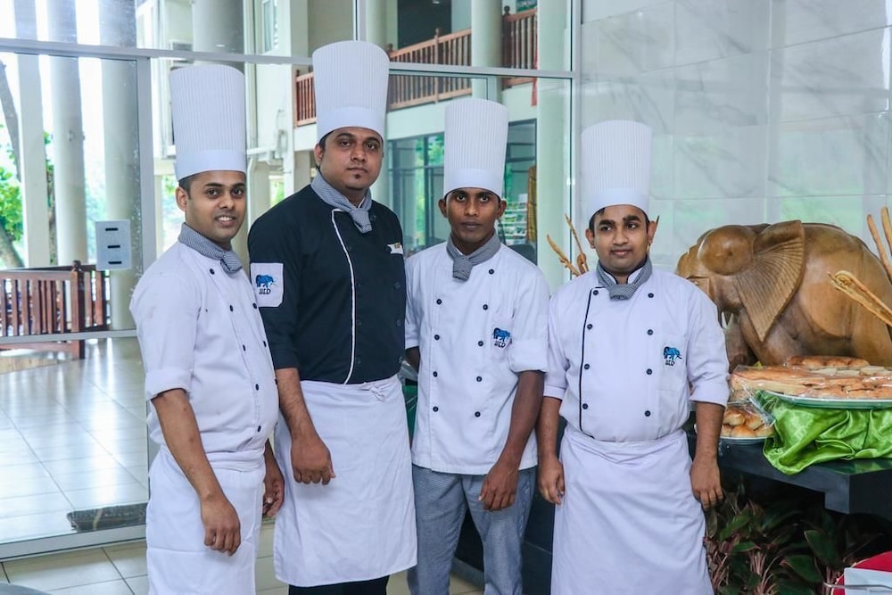 hotel was good but could do with a bit of work. the bathroom window wouldn't shut properly so we had to make sure bathroom door was shut to stop the mosquitoes getting in during the night. we tried to go into the hotel before check in but we weren't allowed. you can see the elephants in the morning from the hotel though. check in and out was easy. there is also spice gardens nearby which you can visit along the way. we had dinner at the hotel which was a new buffet. veggie options weren't great buy they did have some, it wasn't the best and a lot more expensive than local restaurants but there isn't much choice round there that's nearby. breakfast was ok but fruit was covered in flies so just had eggs on toast and the hot food that was covered. elephants on the safari tour in kadulla was much better!