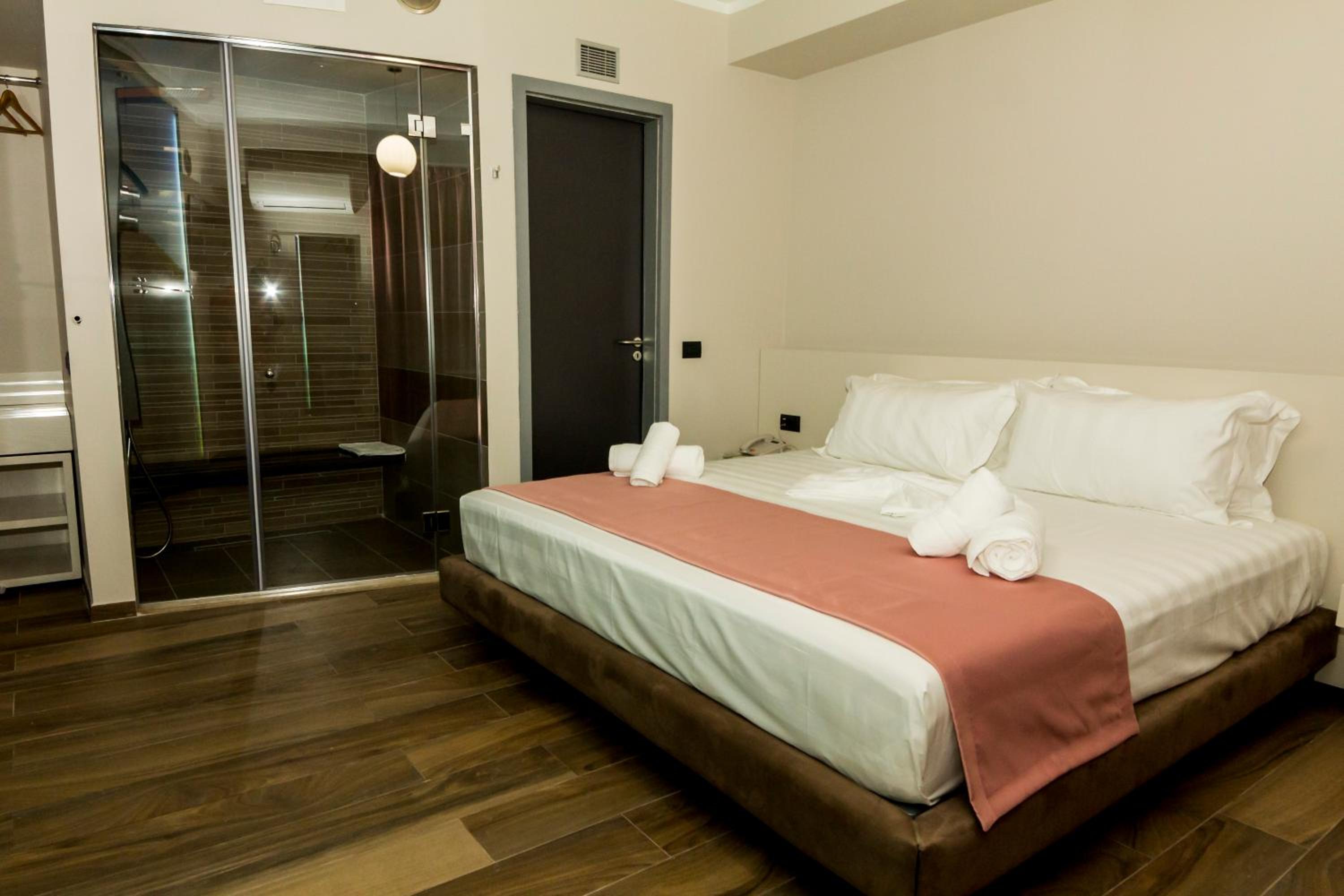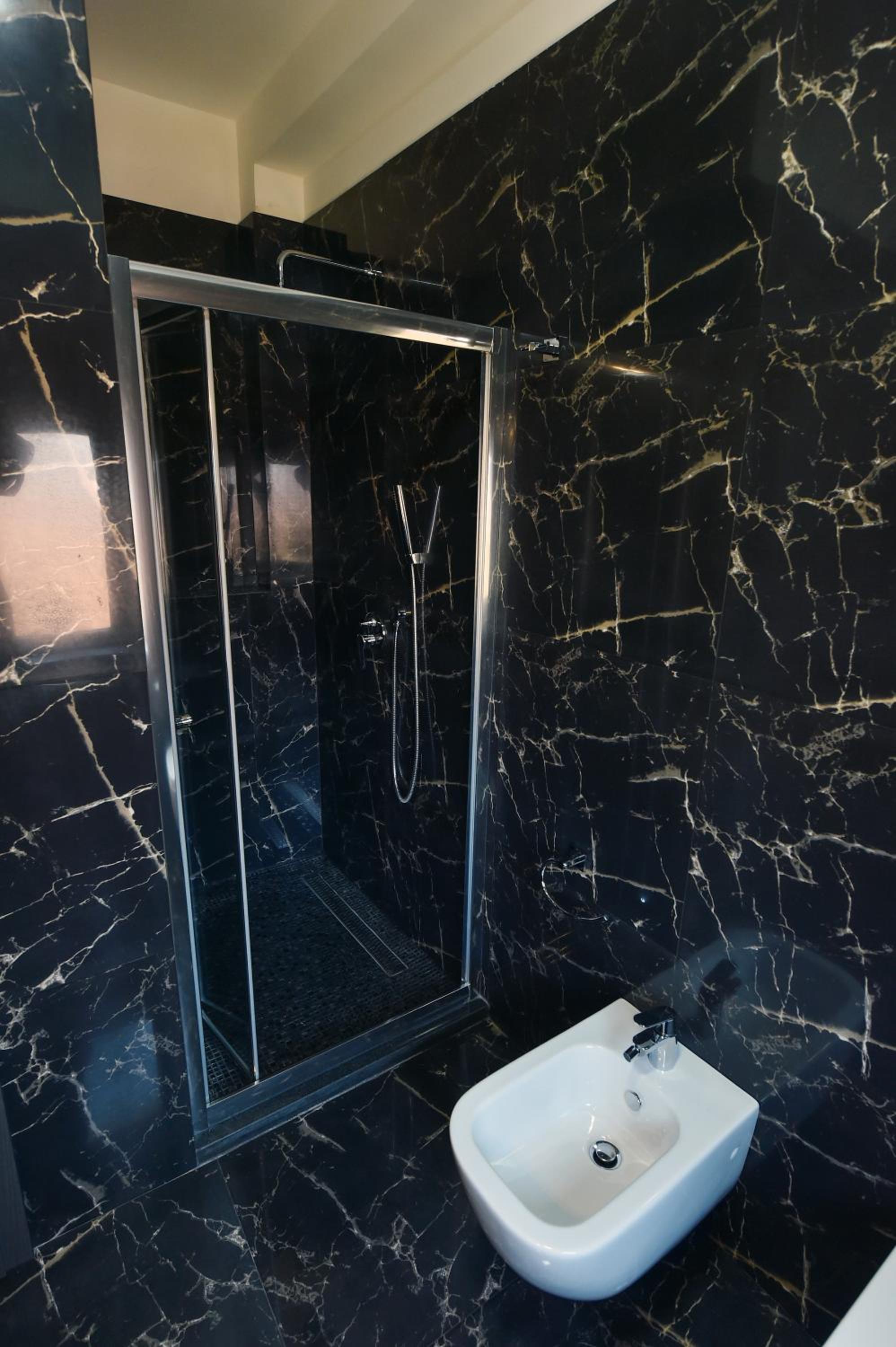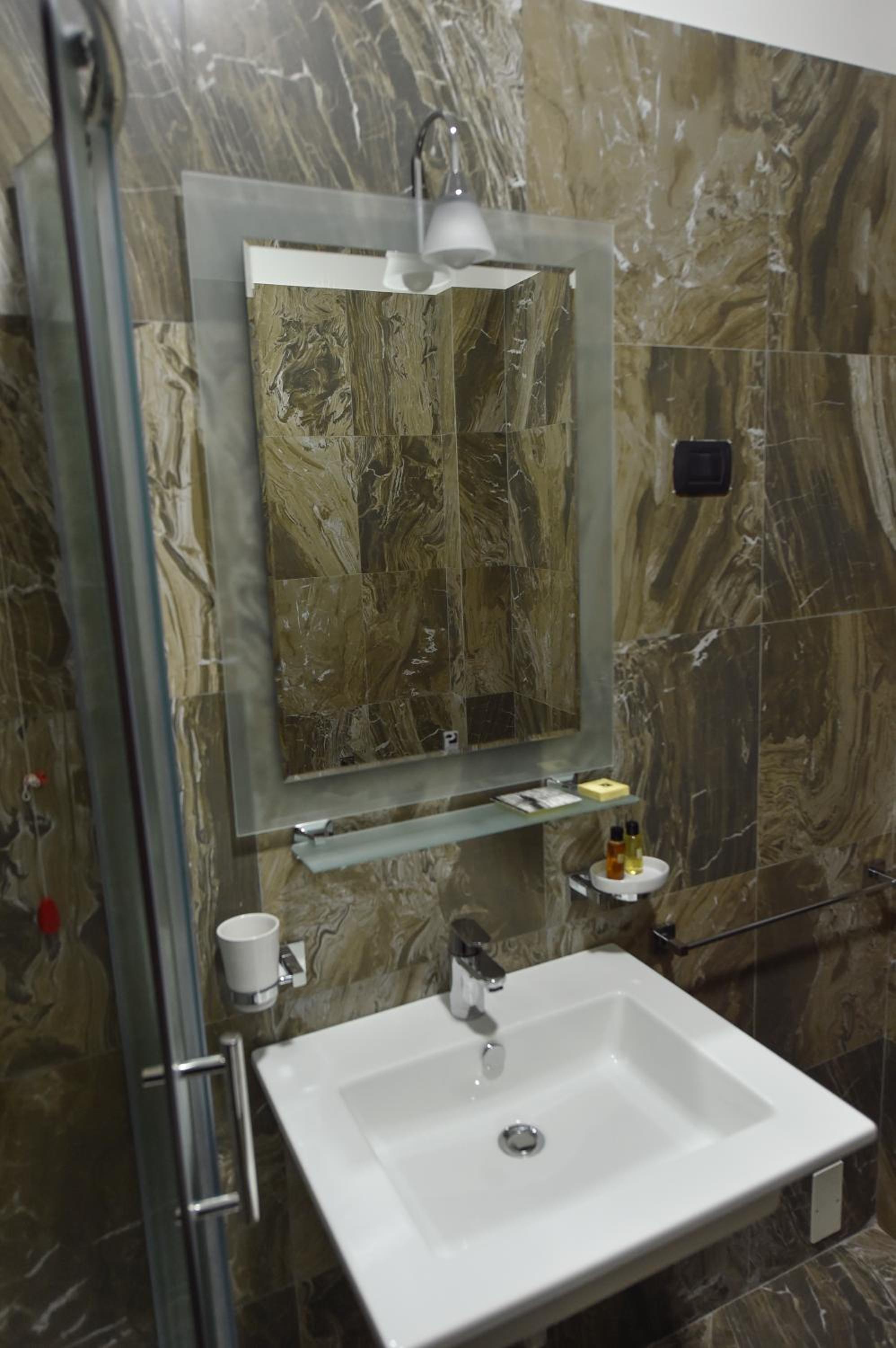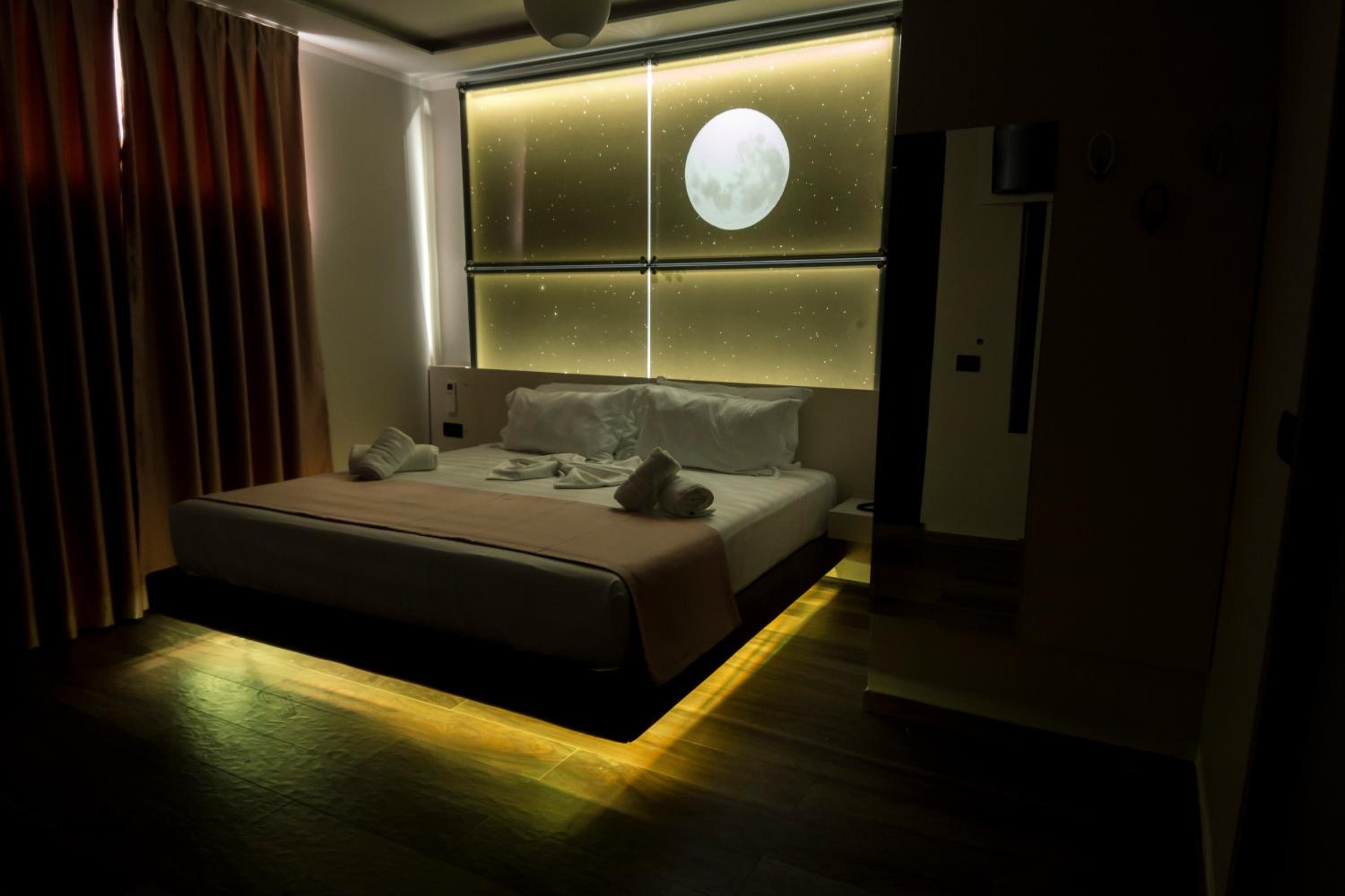 La Suite al quarto piano era enorme, comprendeva tre stanze grandi, ognuna con un proprio bagno, un balcone/terrazza grande e uno spazio comune ampio. Tutto super puliti e curato. Personale gentile e disponibile. Sì trova a poco meno di 2 chilometri da Piazza Skanderbeg, raggiungibile in taxi (al costo di 5-6 euri) in pochi minuti o in mezz'ora a piedi. In tre abbiamo pagato 100 euro a notte in totale. Super consigliato.