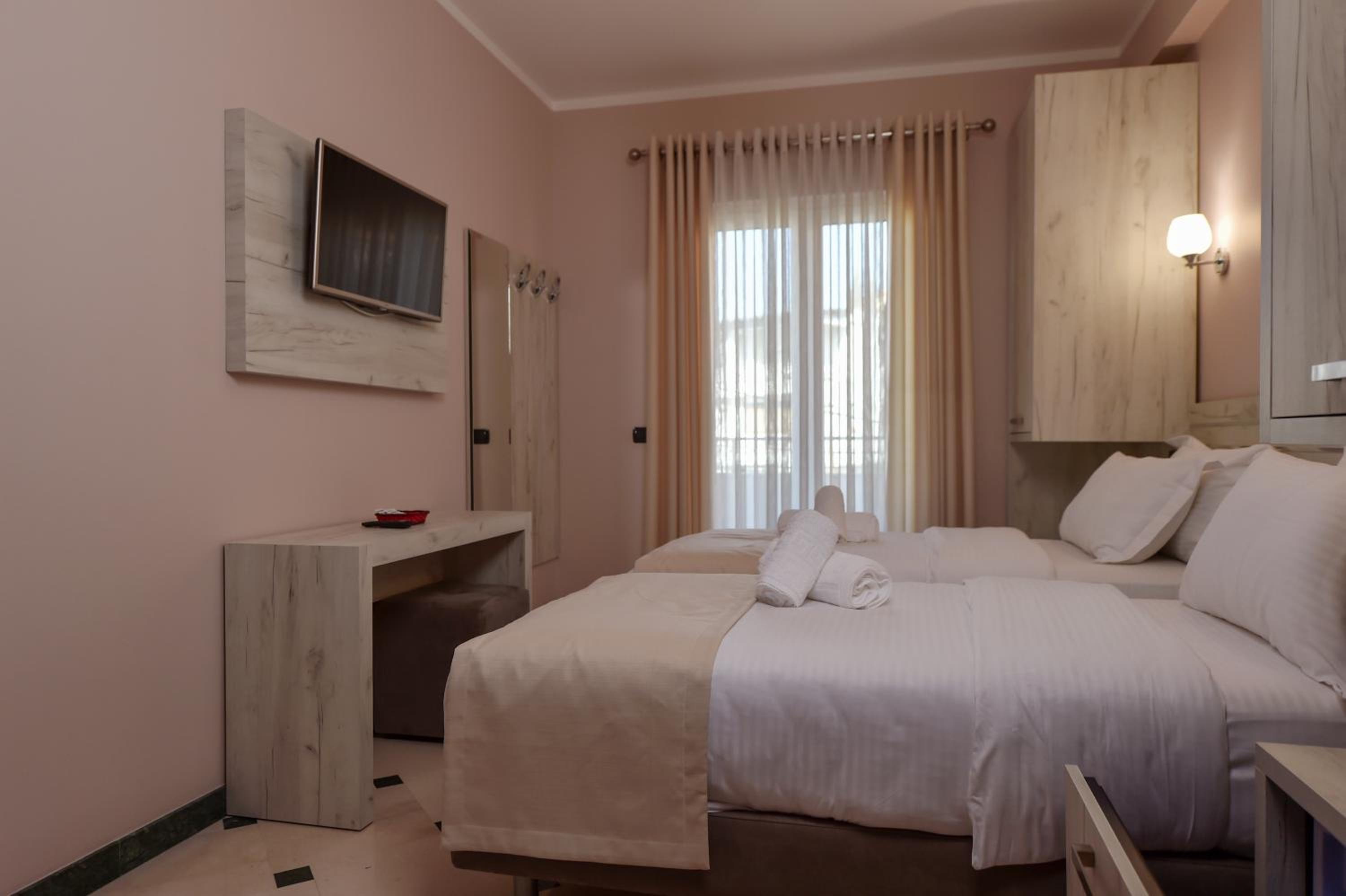 Hotel Pandora Residence offers a tranquil stay in Tirana, just 1 km from the US Embassy. Each air-conditioned room features a flat-screen TV, private bathroom, and a balcony overlooking the city. Enjoy complimentary WiFi and parking during your stay.