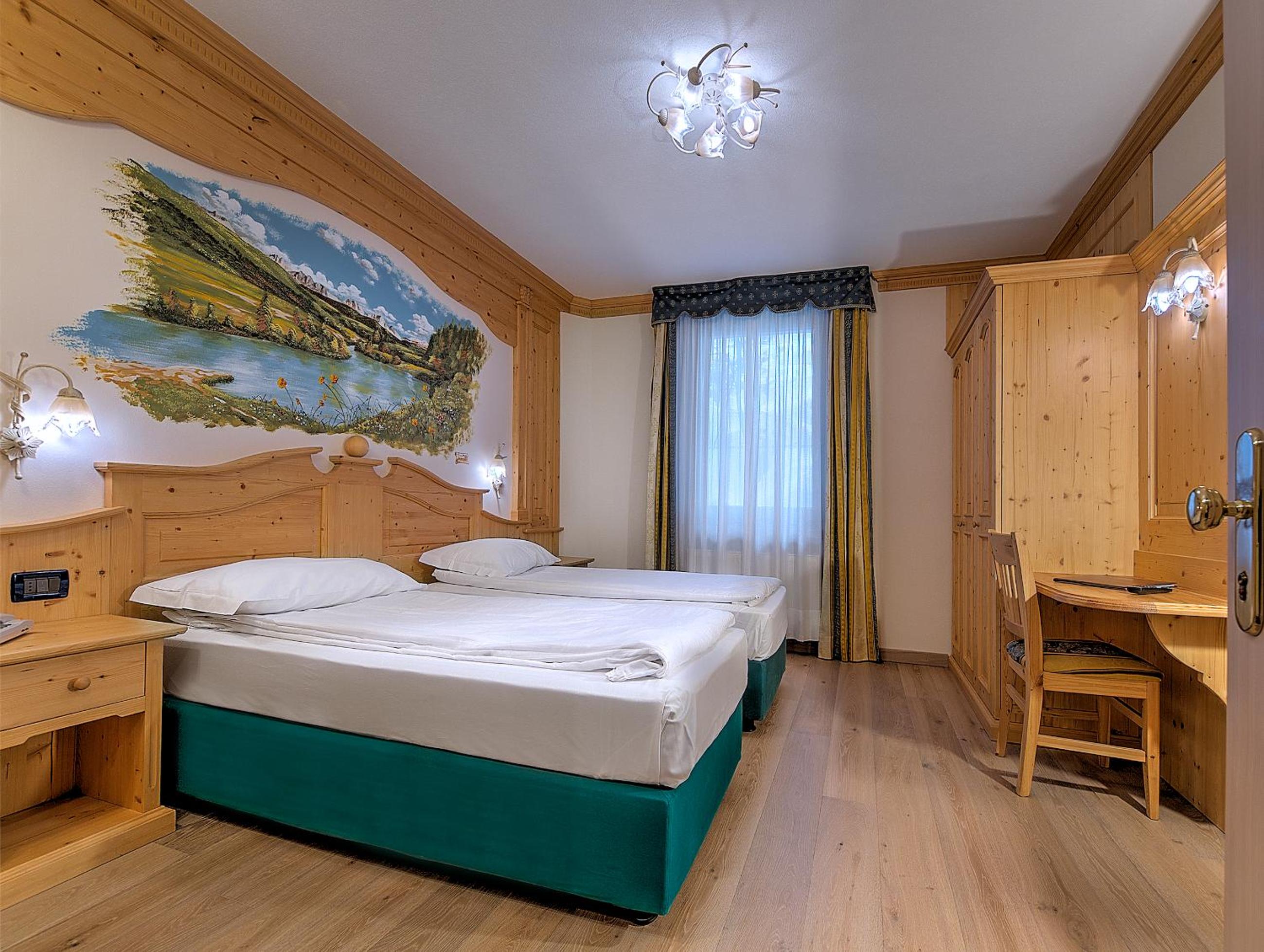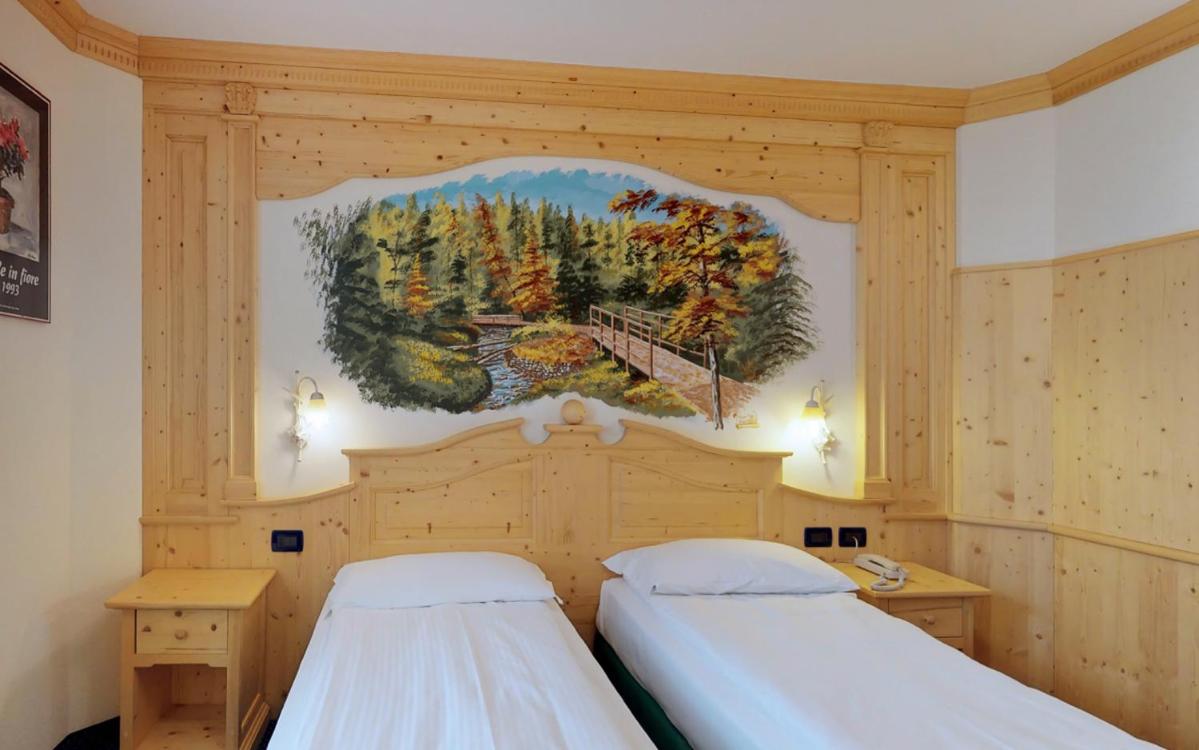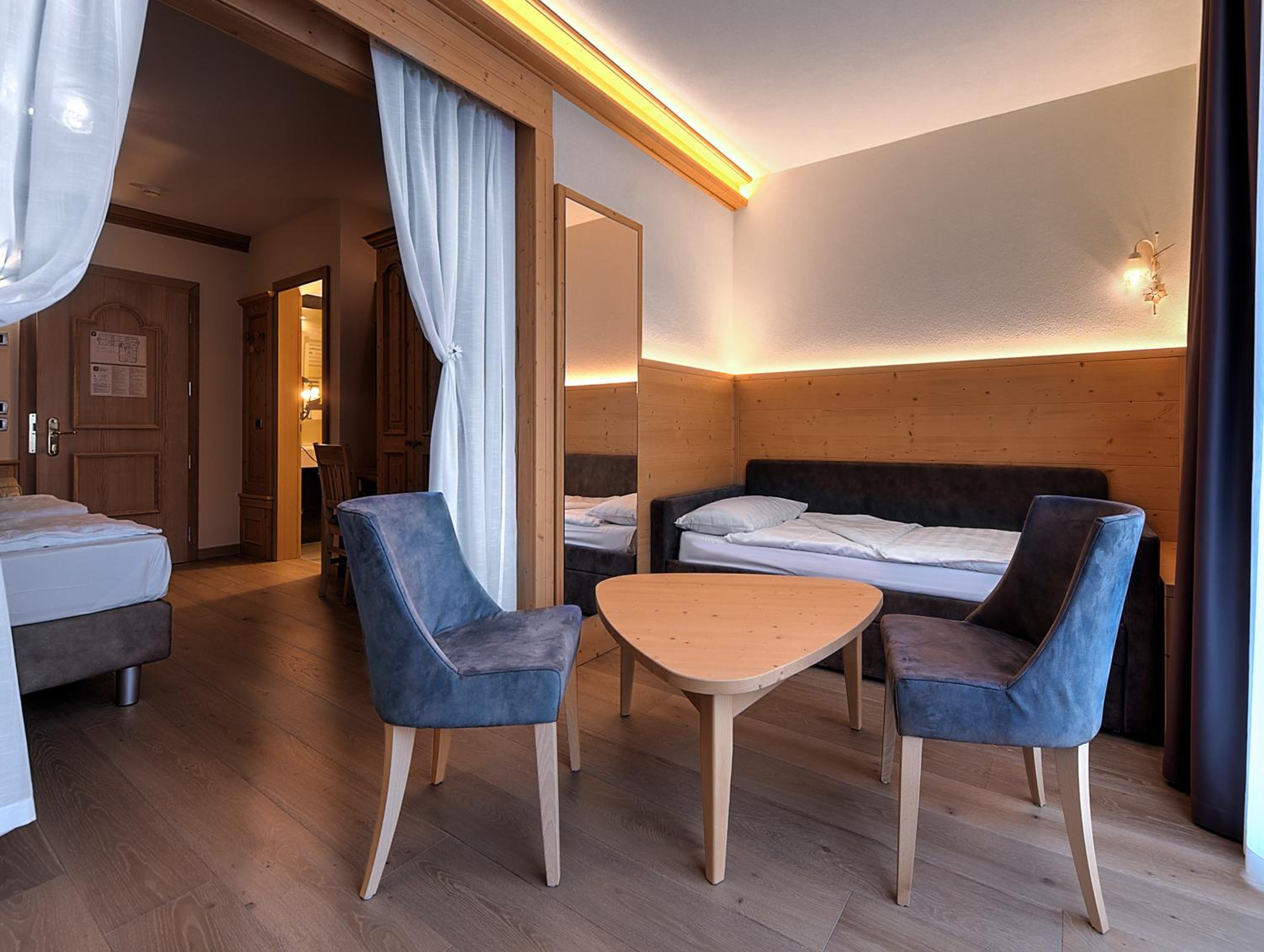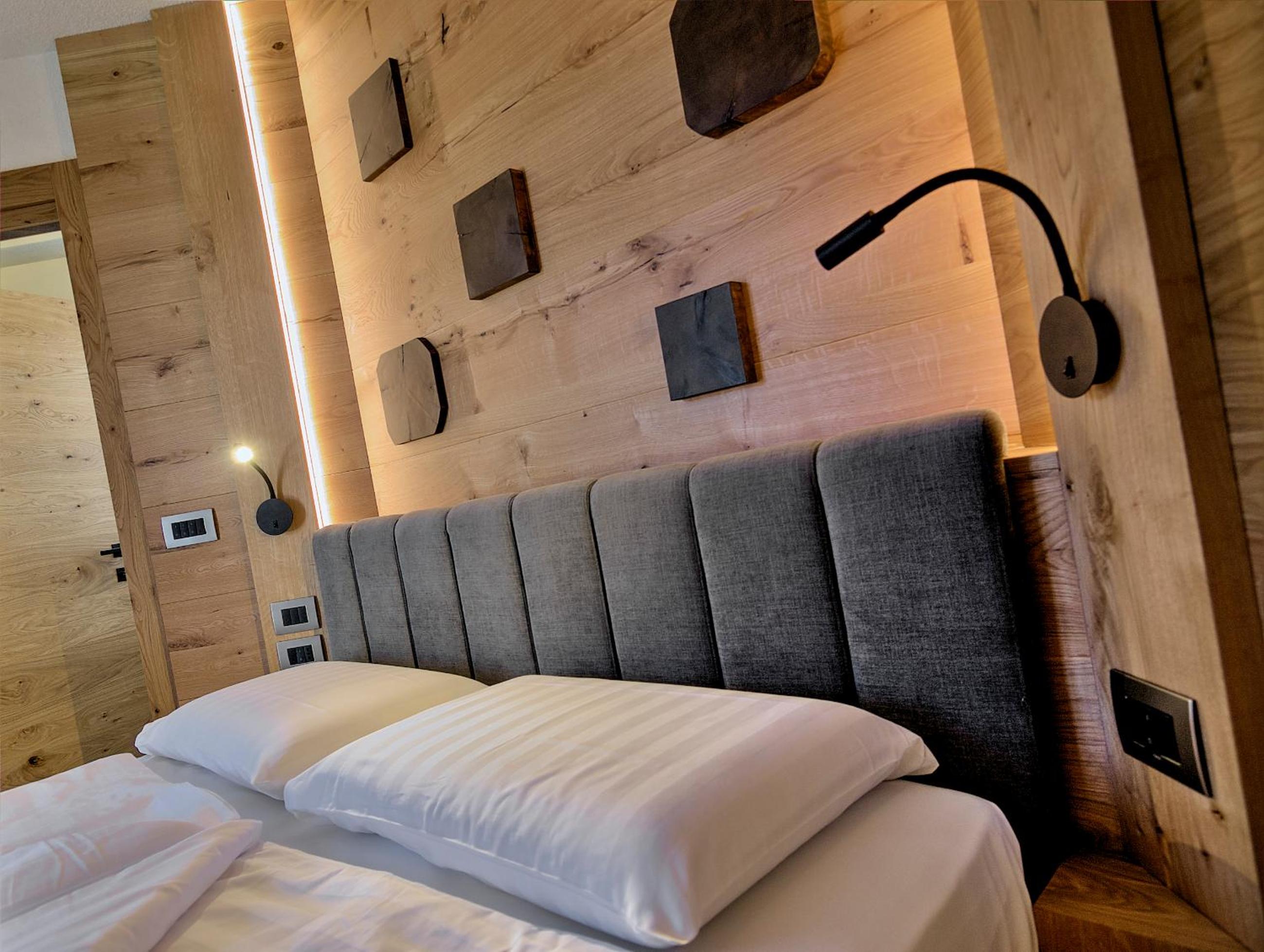Indulge in the cozy comfort of our Alpine-style rooms at Hotel Madonna delle Nevi. Enjoy modern amenities such as flat-screen TVs and wood-beamed ceilings, offering the perfect blend of tradition and convenience.