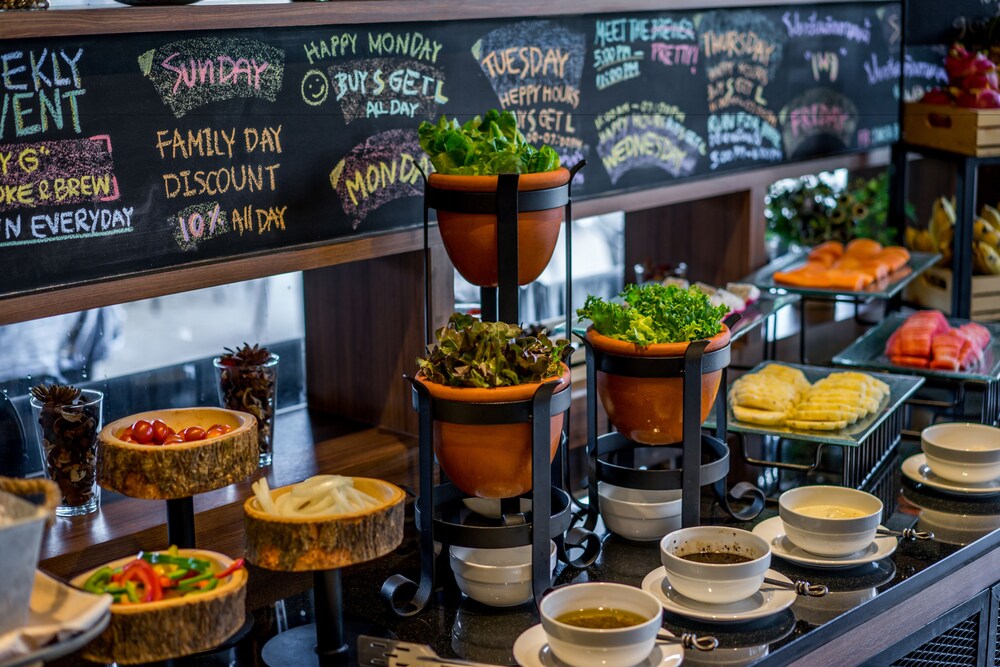 Now the cons: there was no convenient store nearby, you will have to walk at least 15 either way to reach a convenient store (7-11 or Tesco). Apart from in-house restaurant (Daddy's G), there is no other restaurant in close proximity. The nearest currency exchange is about 2KM away that closes at 4 pm and operates only on working day. Alternatively, you can go to Mall Bankapi with 30 min (100 bath) taxi ride. The breakfast buffet only served Chinese food, as these hotel seems to have concentrated Chinese guests. The TV channels are all Thai language, in addition the TV language was set to Thai, so it was not possible to search for any other international channels as we didnt know Thai language.