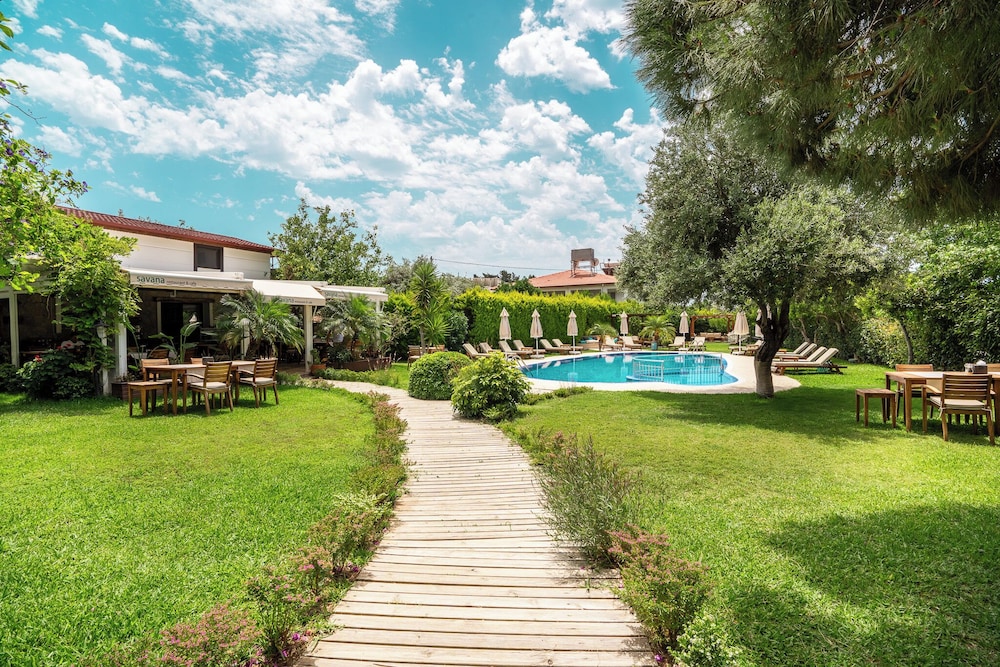 Unwind in the outdoor pool or indulge in the picturesque garden views at Savana Butik Otel.