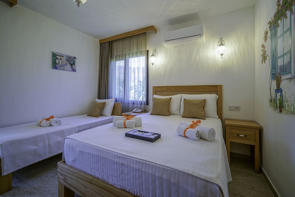 Odalar ve otel bahçesi çok güzel ve bakımlı. Her odanın kendine ait küçük ya da daha büyük balkonu var. Tüm calisanlar ve otel sahibi güleryüzlü ve yardımsever. Otelin ayrica sahilde plaji ve restoranti var. Denize 100 metre ve kendi plajlarina da 300 metre mesafedeler. Otelden plaja gitmek isterseniz aracla alip birakiyorlar. Biz annemle bir gece konakladik ve cok memnun kaldik. Herkese tesekkur ederiz.