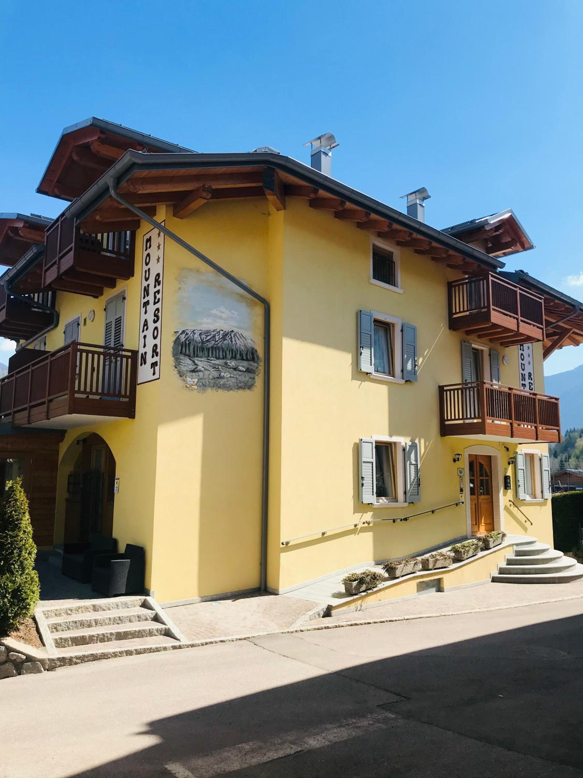 At Hotel Mountain Resort, experience a cozy stay in the heart of Commezzadura with stunning mountain views. Choose from individually decorated apartments and rooms, each offering elegance and comfort. Enjoy the convenience of on-site amenities such as a TV room, ski storage, and a welcoming bar where you can savor local delicacies by the fire.