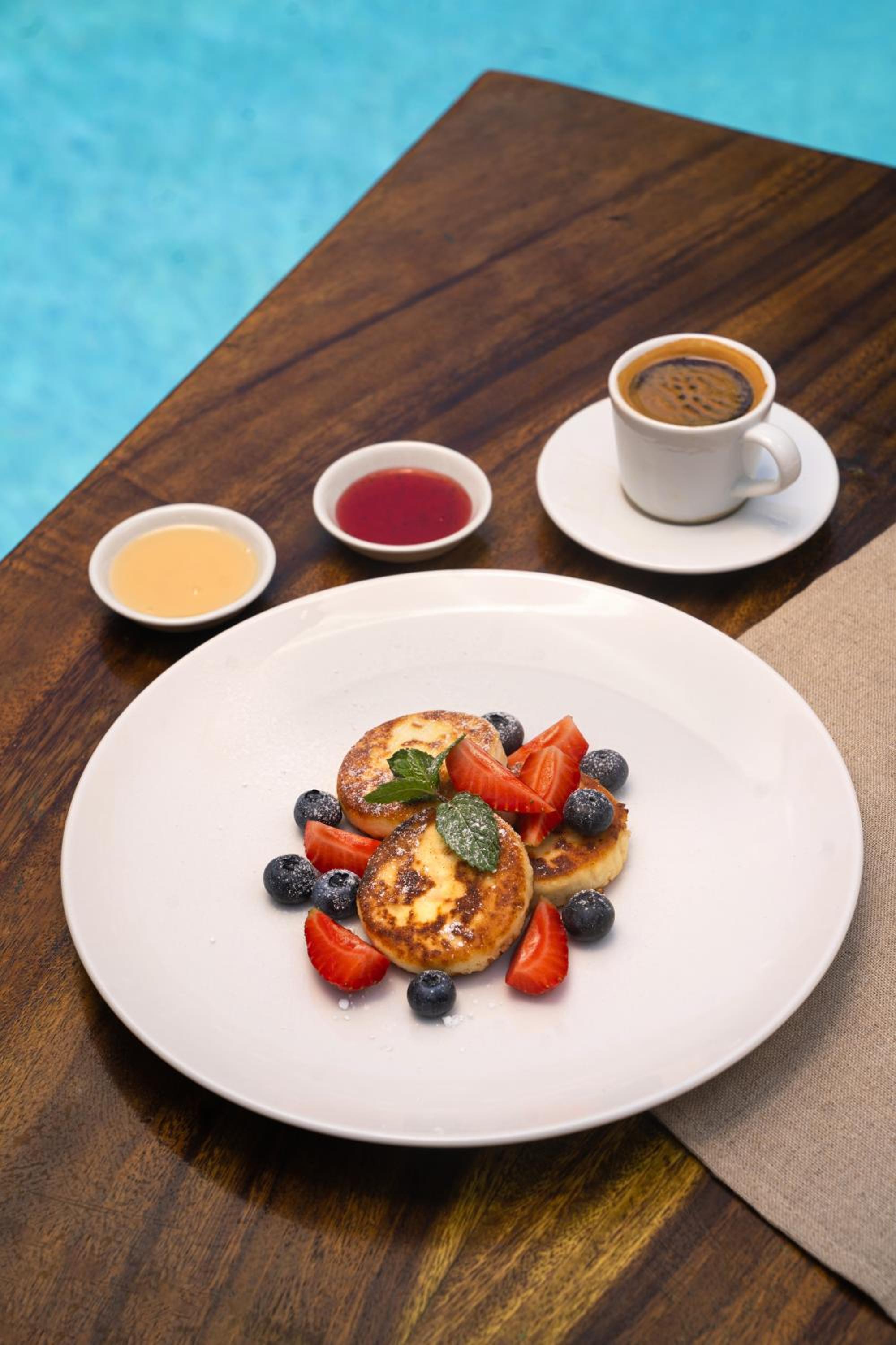 Pool and relaxed atmosphere. Also, the included, à la carte breakfast was available till noon. Never had that before. Nice touch.