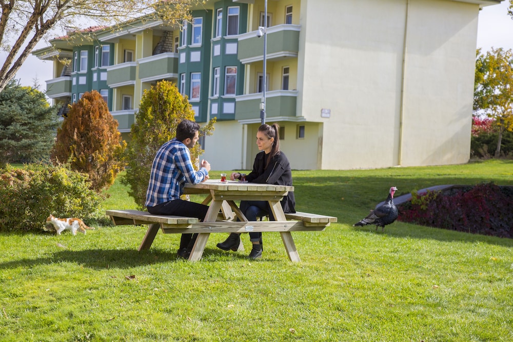 Gidecek olanlara şunu iletmeliyim.Otelin yaş ortalaması çok yüksek. Ailecek gittiğimizde etraftaki garip bakışlardan çok rahatsızlık duyduk. Huzurevini andıran bir görüntüsü mevcut. Çalışanları gülerken görmek çok zor, tebessüm eden kimseye rastlamadık. Termal otel olmasına karsın hijyen açısından tuvalet ve banyoları malesef hoş değil. Bir daha asla kalacagımı düşünmüyprım. Ayrıca evcil hayvan yasak olmasına karsın bahcedeki hayavant bahcesi alanda 3m2 ye hayvanları hapsetmeleri ayrı bir ironi. Müşteri çekmek için hayvanları hapsedeceğinize kişilerin evcil hayvanlarına izin vermeniz vok daha anlamlı.