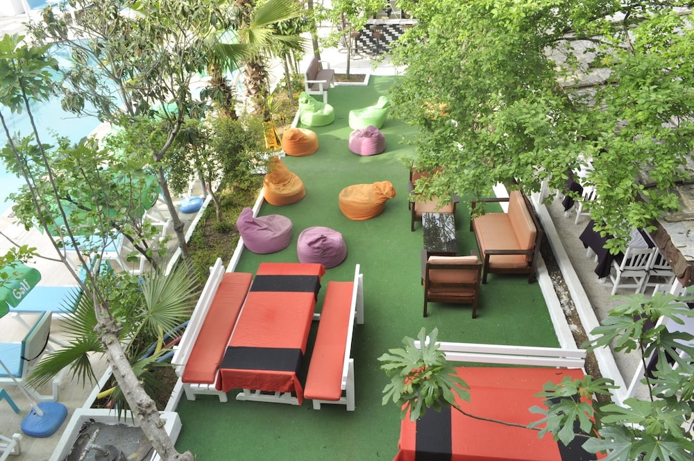 Immerse yourself in relaxation at Nicholas Garden Hotel with a refreshing outdoor pool and serene garden view. Perfect for unwinding under the sun or enjoying a tranquil evening outdoors.
