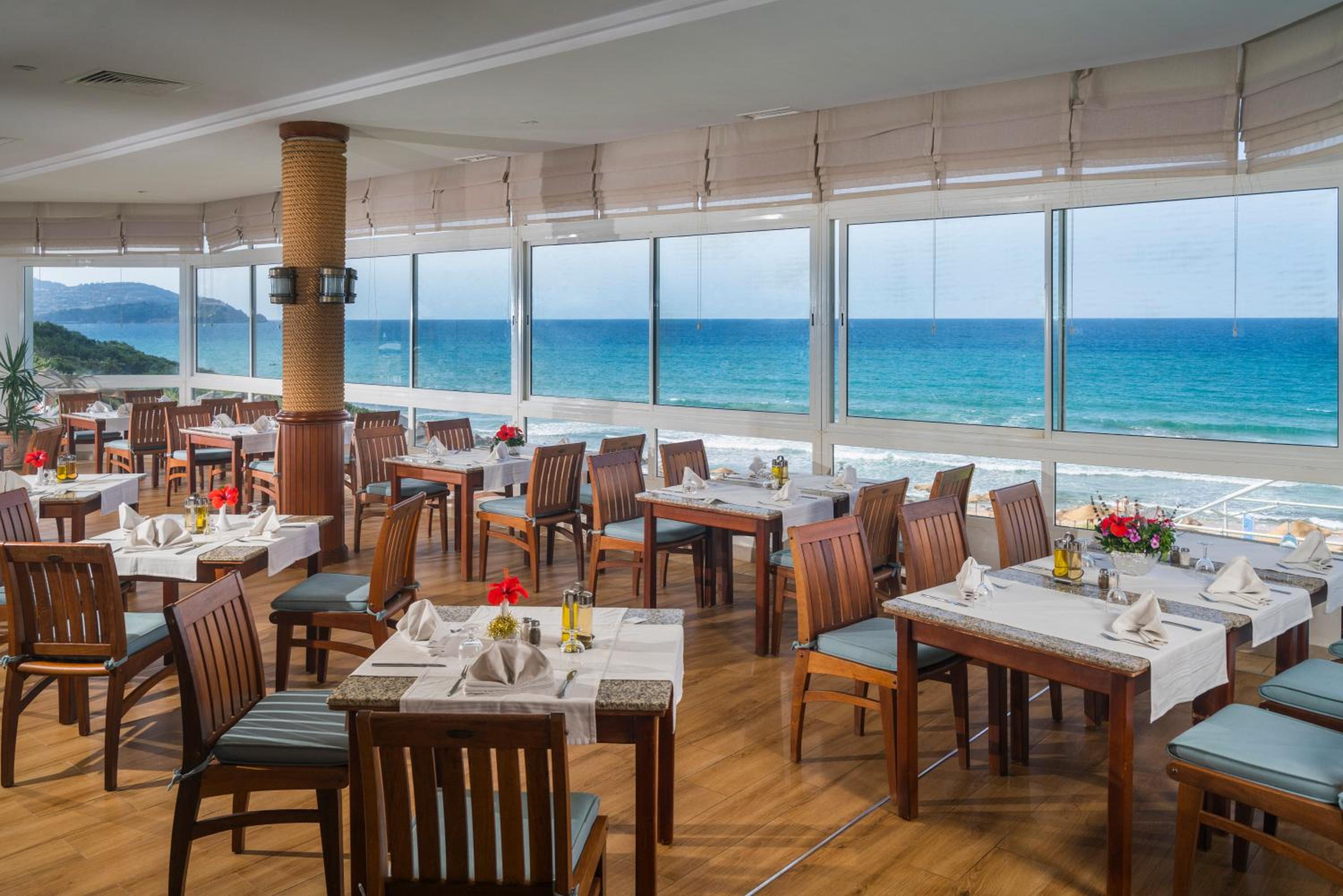 Trés bien situé en face la mer , cuisine buffet excellente ,personnel professionnel.