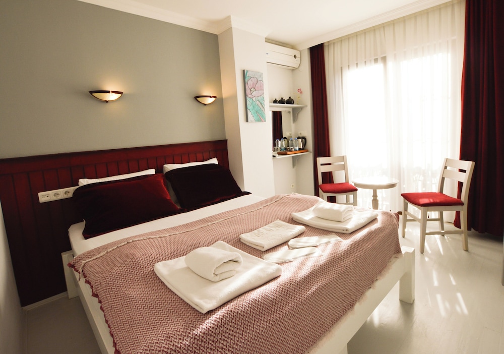 Oda olarak standart oda seçmiştik yarim pansiyon. Otele girip bize odayi gosterdiklerinde şok oldum. Bir oda daha olmasi lazim dinlenme odasi dedim oyle bir oda olmadigini ilettiler bizim sectigimiz odada dinlenme odasi vardi cunku yoksa tercih etmezdik. Neyse dedim yanimizda üç dört valiz vardi hepsini tasimak zorunda kaldim. Gösterdikleri odaya gittiğimizde burnumuza bir agda kokusu vurdu ağır bir kokuydu. Gidip oda kokusu almak zorunda kaldik bir bebegimiz var ve hijyen olarak sinifta kaldi bizim icin. Bebeğimiz icin verdikleri yatak cok kirliydi. Iyi ki yanimizda carsaf vs almistik esim onunla yatagi sarip sarmaladi da yatak birseye benzedi.. Hicbir sekilde temizlik icin bilgi vermediler biz kendi imkanlarimizla odayi temiz tutmaya çalıştık.. Kahvalti olarak güzeldi sadece.. Oda dolabi o kadar kotu ki dolap rafi elimizde kaldı.. Otelden ayrilacsgimiz zaman valizleri tasimama dahi yardim edilmedi.. Calisanlarca kahvalti masasinda kahvaltilarina devam ettiler.. Gelmek isteyenlere önerim çok iyi arastirin odalar cok kucuk ozellikle bebekli iseniz.. Tekrar tercihimiz olmayacaksiniz..