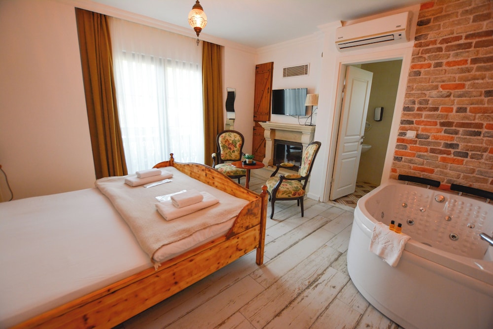 Sevgililer günü için tercih etmiştik. Kalp havlu ve gül yaprakları ile küçük bir jest yapılmıştı. Çalışanlar ilgili ve saygılı. Temizlik için mükemmel diyemem ama kötü ya da rahatsız edici değildi. Jakuzi ve şöminenin aynı odada olması keyifli. Kısa tatiller için tercih edilebilir.