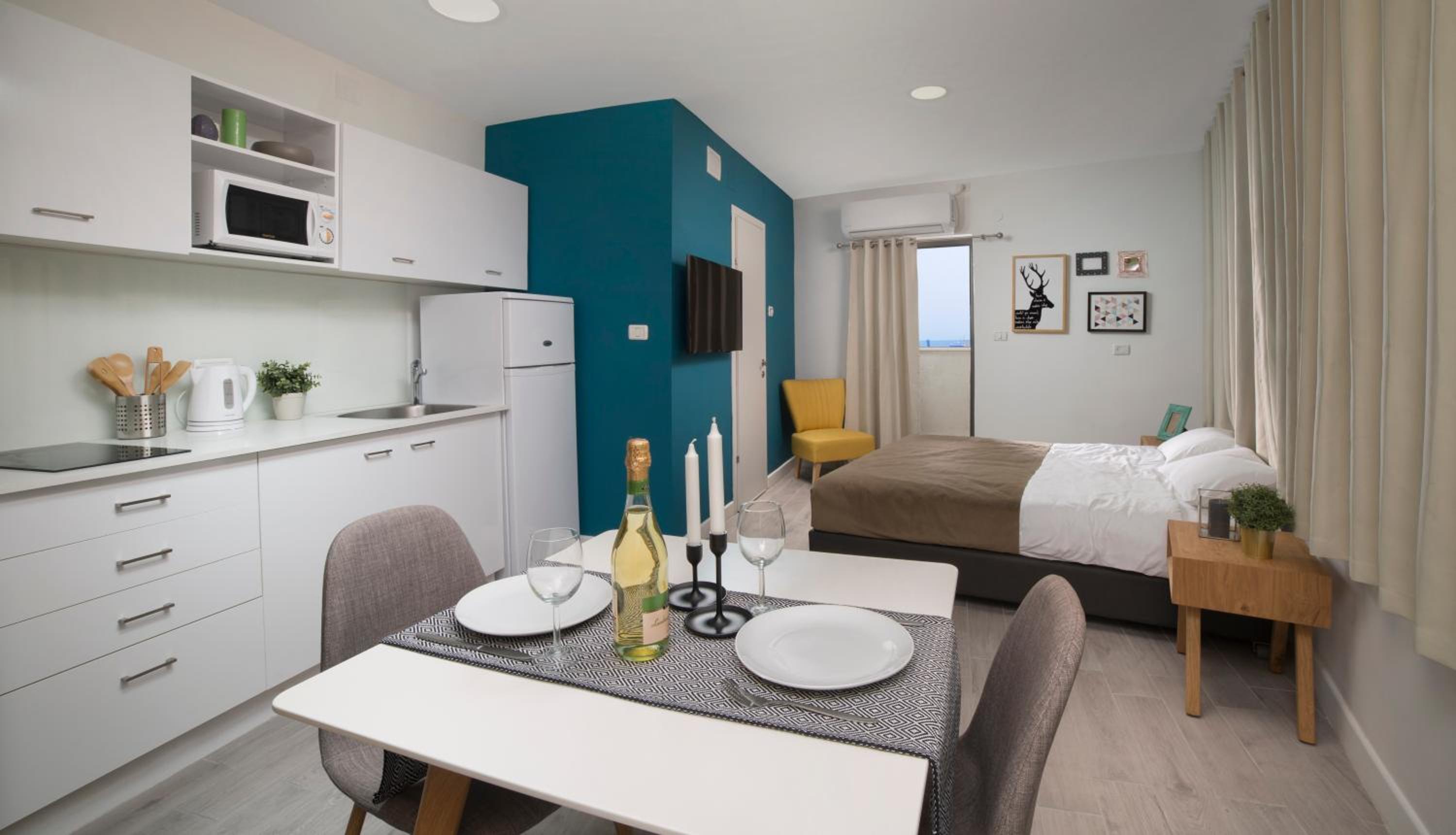 בחדרים מיקרוגל , מקרר גדול ומטבחון